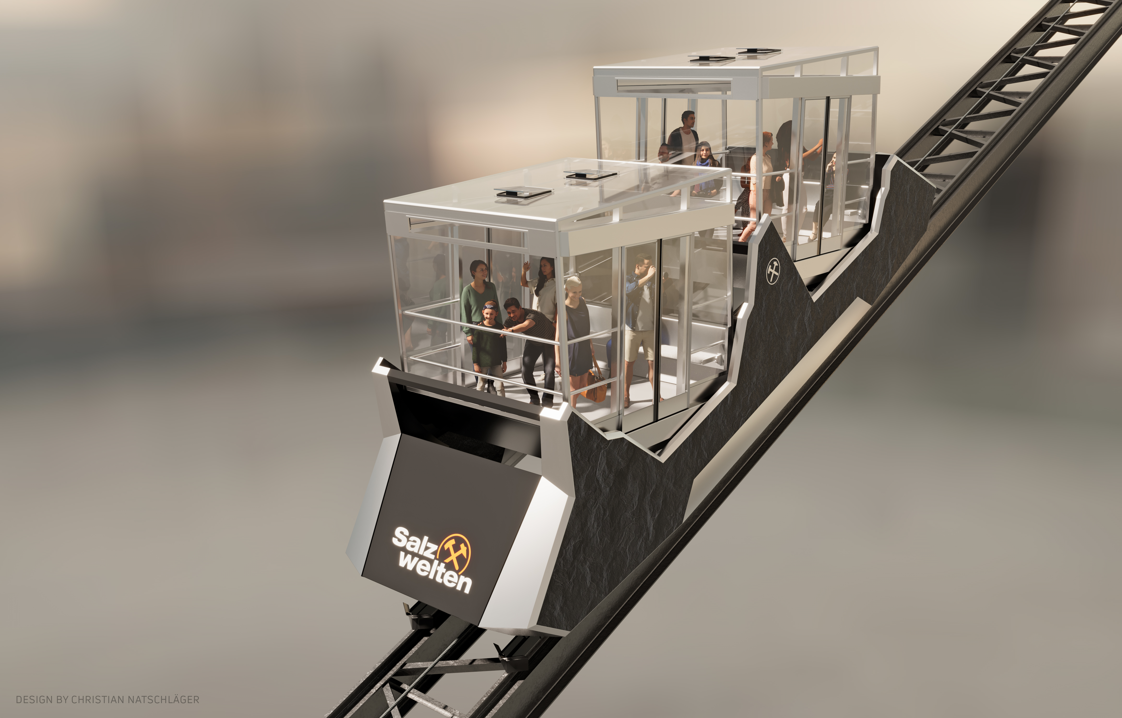 Für die technische Umsetzung der neuen Seilbahn zeichnet die Doppelmayr Gruppe – vertreten durch Garaventa, den Standseilbahn-Experten, sowie Carvatech, dem Kabinenhersteller aus Oberweis – verantwortlich. Die Kabinen verfügen über eine innovative Niveauregulierung, die einen barrierefreien Zu- und Ausstieg ermöglicht. Das Design der modernen Glas-Kabinen orientiert sich an der Form von „Salzkristallen“ und setzt damit ein markantes, einzigartiges architektonisches Zeichen.