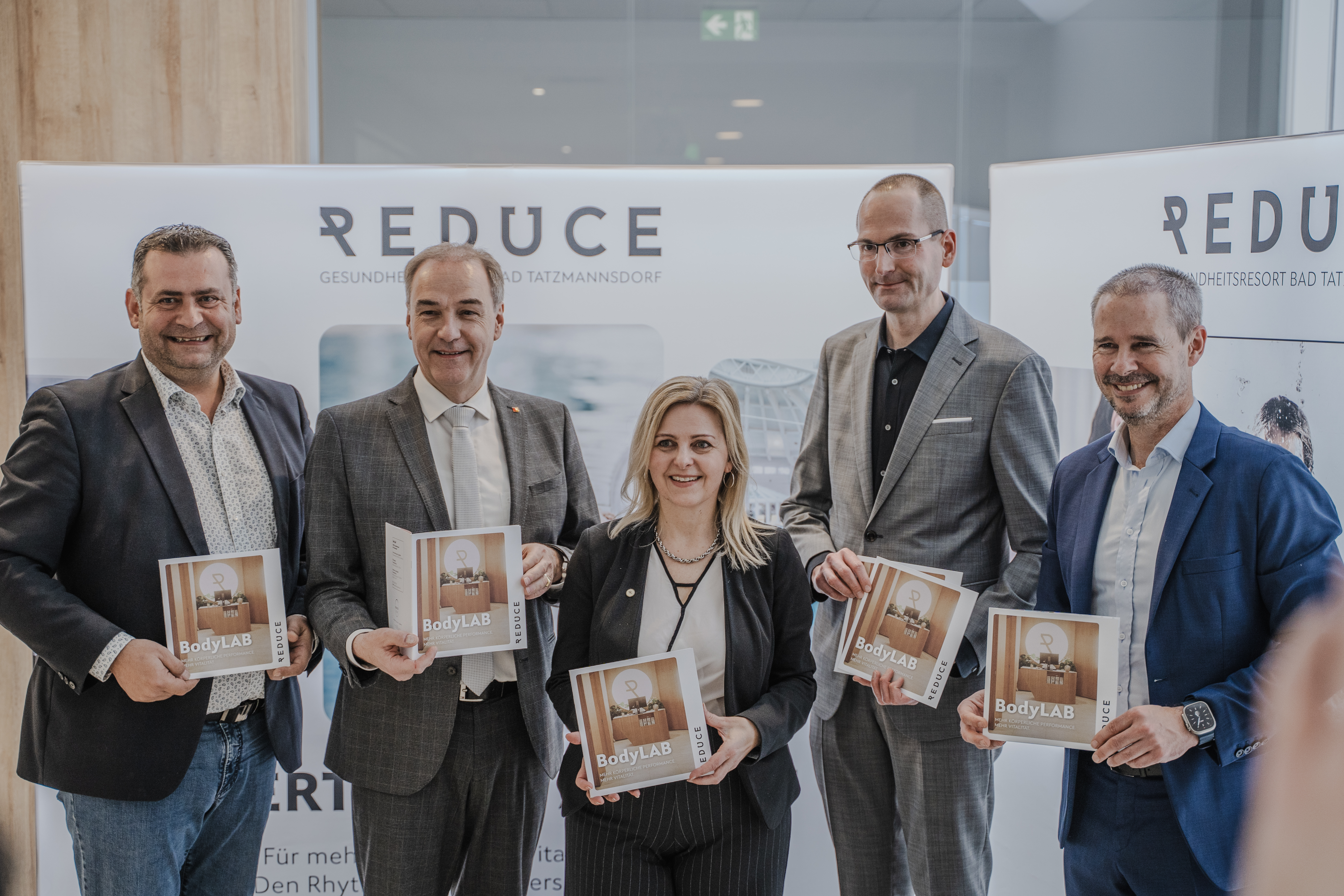 Mit der Eröffnung des BodyLAB setzt das REDUCE Gesundheitsresort Bad Tatzmannsdorf wieder einmal neue Maßstäbe in Sachen Gesundheitsoptimierung, Prävention und Lifestyle. Gäste des Resorts und Bewohner:innen der Region profitieren ab sofort von modernsten Technologien in einem erfrischenden Ambiente, das medizinische Expertise mit innovativen Anwendungen verbindet. Am gestrigen Weltgesundheitstag wurde das BodyLAB nun im Beisein von Gästen, Medienvertreter:innen und LR Dr. Leonhard Schneemann offiziell in Betrieb genommen.