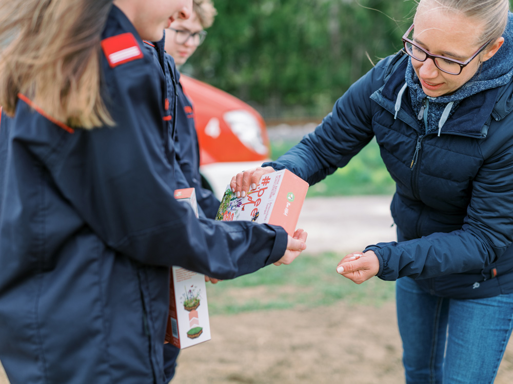 Jedes Feuerwehrjugendmitglied erhält ein Artenschutz-Saatgut Päckchen zur Aussaat von 2m² Bienenweide (in Summe für über 70.000m² Bienenweiden)