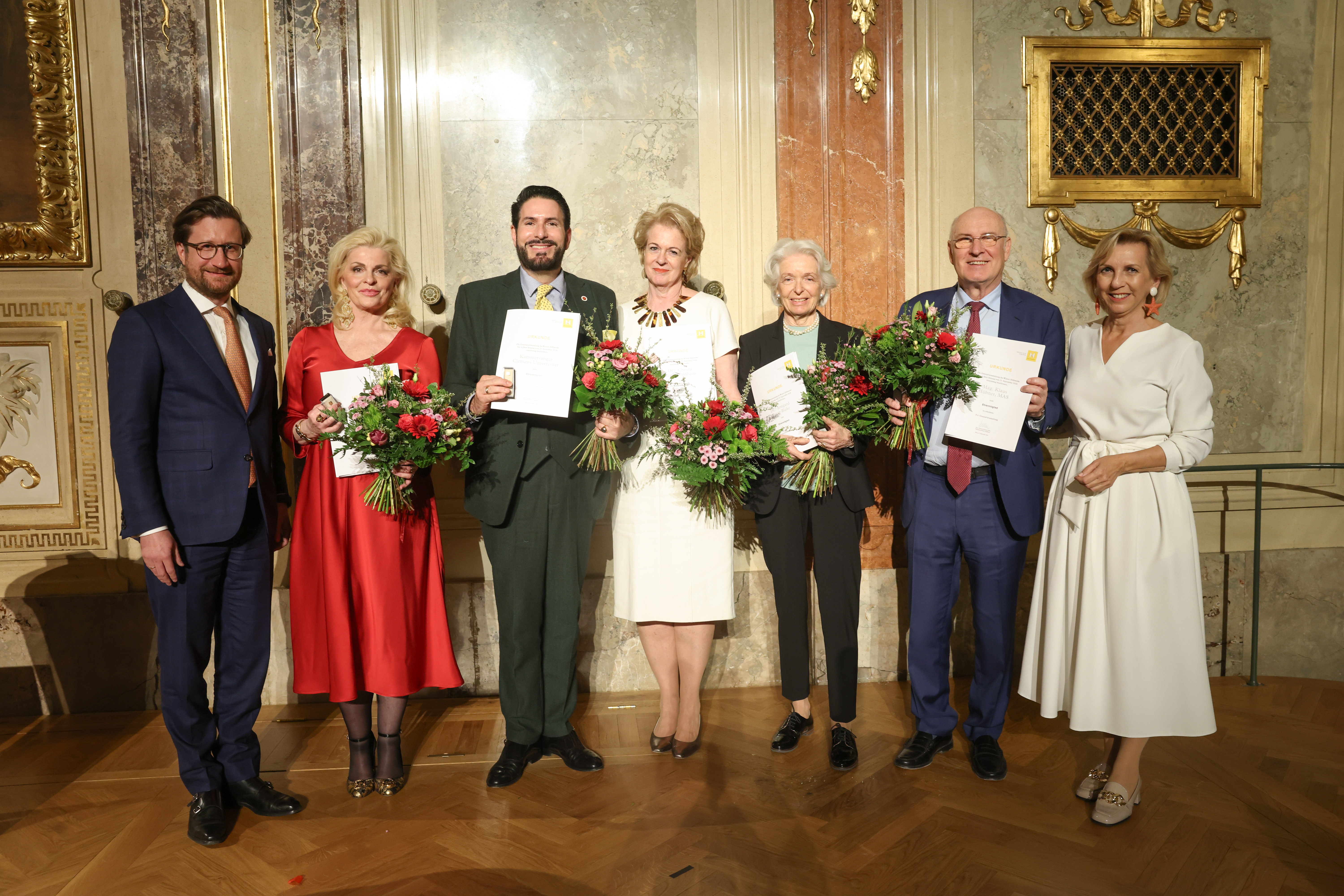 Als besonderes Highlight des Abends erhielten Barbara Feldmann, Christa Karas-Waldheim, Irmgard Bayer-Blake, Clemens Unterreiner, Lidia Baich und Klaus Hübner für Ihre großartige Unterstützung die Ehrenmitgliedschaft des Wiener Hilfswerks.