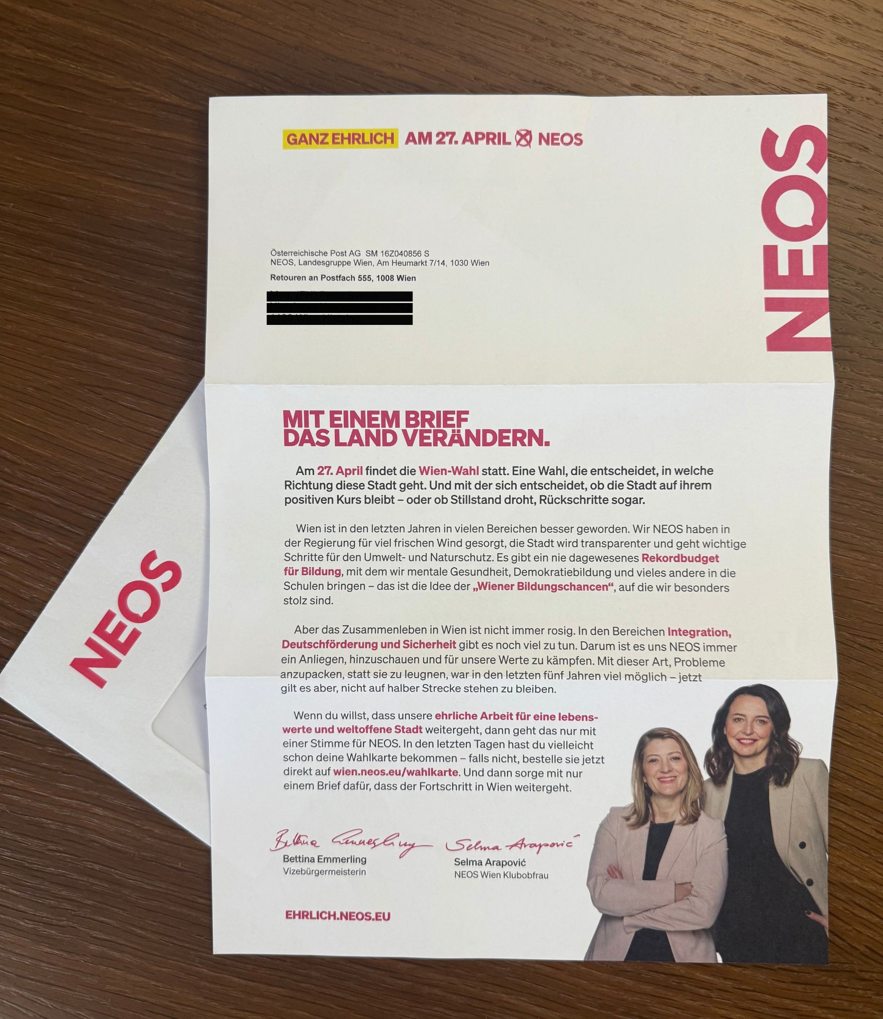 Auch inhaltlich zeigt sich das Bild einer Partei im Durcheinander: Während noch vor wenigen Wochen zwei Bundespolitiker auf den NEOS-Wahlplakaten zu sehen waren, präsentieren sich plötzlich zwei neue Gesichter als Wiener Spitzenkandidatinnen – „zumindest dieses Mal“, wie der Brief anmerkt. „Was ist eigentlich mit den NEOS in Wien los? Wen wählt man da eigentlich? Und wer entscheidet bei den NEOS überhaupt, wer vorne steht?“, fragt Sverak.