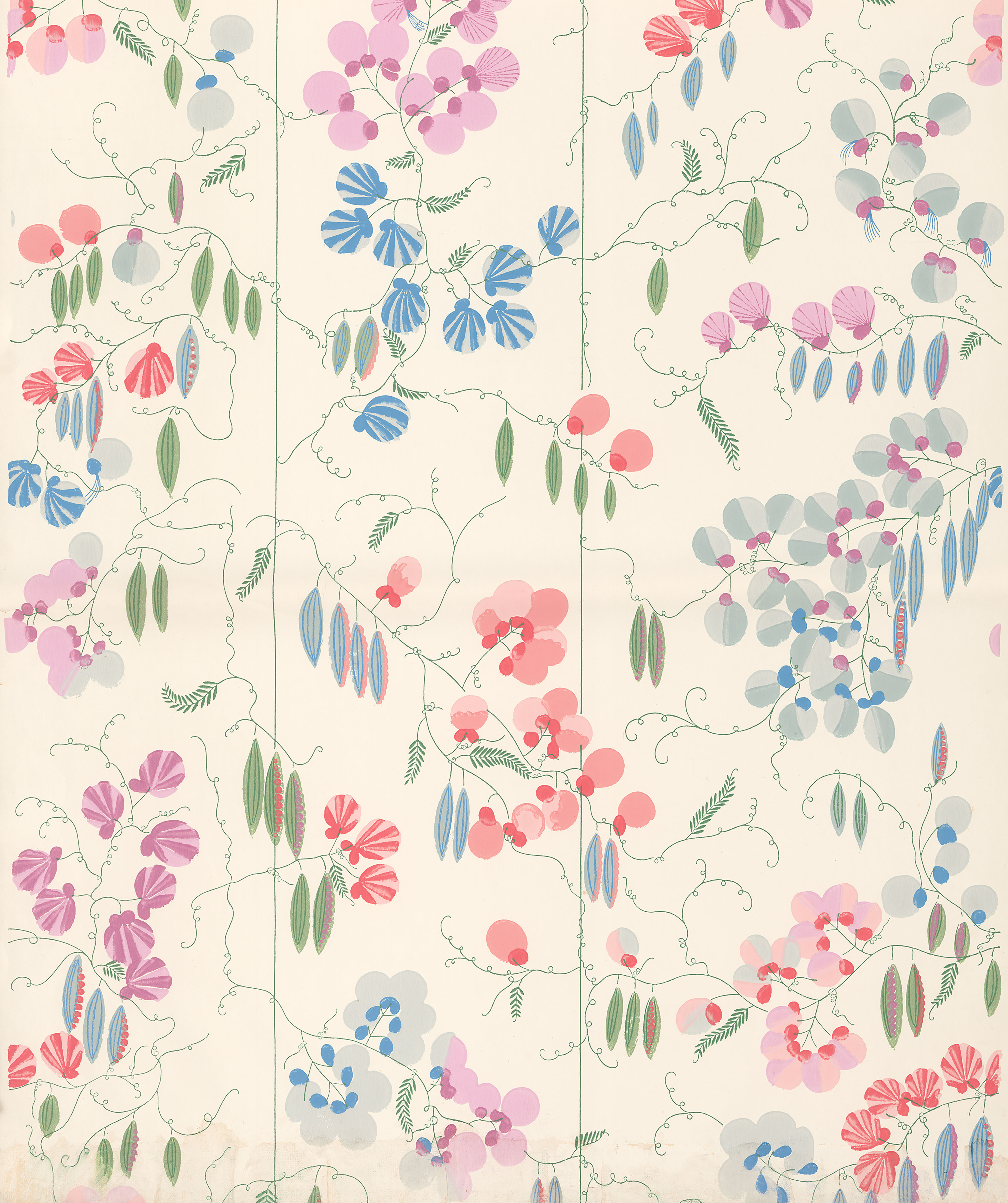 Regelmäßig kehrte sie nach Wien zurück, um weiterhin für die WW zu entwerfen. So entstand 1928 eine fantastische Tapetenkollektion mit vier Mustern in etlichen, teils ungewöhnlichen Farbstellungen, die die Grundlage für die verwendeten Designs auf der Expo bilden. Die Tapeten werden derzeit von der japanischen Firma Linden wieder aufgelegt und mithilfe einer 150 Jahre alten Druckmaschine in England produziert.