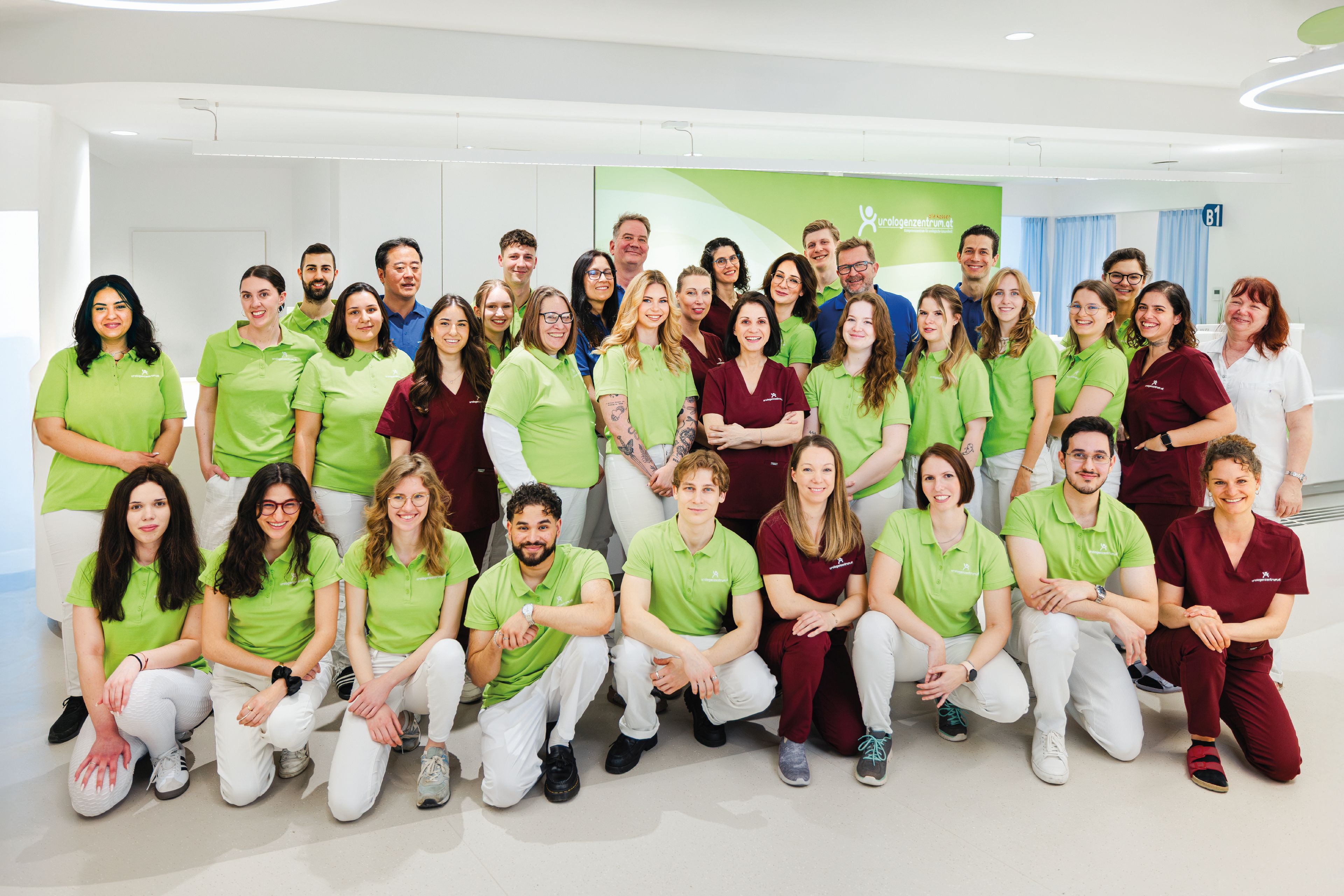 Das Team des Urologenzentrums setzt sich zusammen aus sieben Fachärztinnen und -ärzten sowie drei Assistenzärztinnen und -ärzten. Unterstützt werden sie von acht hochqualifizierten urologischen diplomierten Gesundheits- und Krankenpflegekräften. Für den reibungslosen Ablauf am Empfang, in der Telefonzentrale sowie im Backoffice sorgen weitere 50 Mitarbeiterinnen und Mitarbeiter. Und auch zahlreiche Medizinstudierende finden im Urologenzentrum eine sinnvolle Tätigkeit neben ihrem Studium.