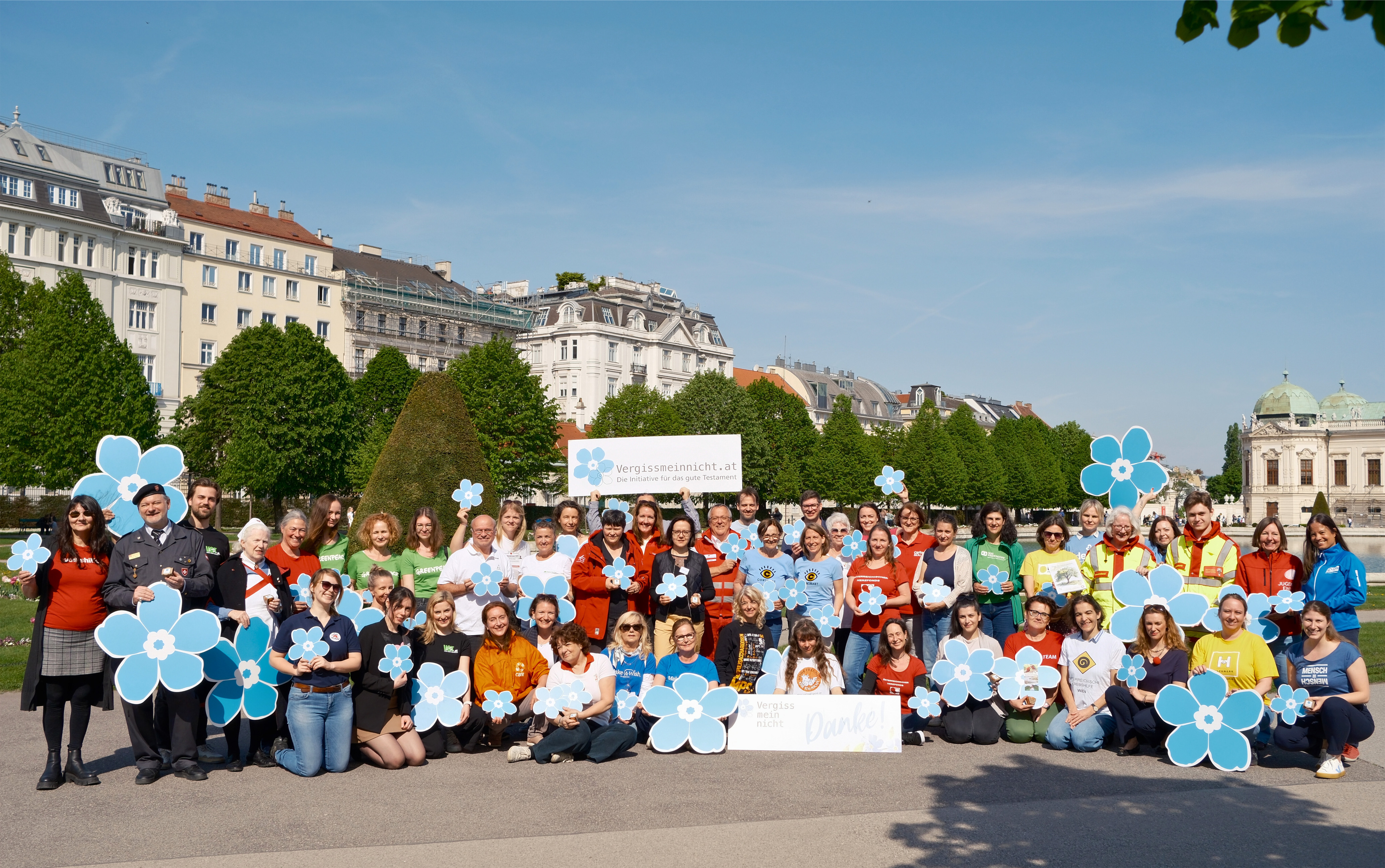 Um dieses sensible Thema noch stärker in die öffentliche Wahrnehmung zu rücken und als Zeichen des Danks an alle Spendenden für die positiven Spuren, die sie hinterlassen haben, schwärmen die Vergissmeinnicht-Organisationen nach einem gemeinsamen Foto im Belvederepark Wien in ganz Österreich aus, um 2.000 Vergissmeinnicht-Samentöpfe an die Bevölkerung zu verteilen – einen für jede Testamentsspende im Vorjahr. „Mit dem Vergissmeinnicht-Samentopf wollen wir an die vielen Personen erinnern, die mit Ihrem Lebenswerk gemeinnützige Organisationen bedacht und damit über ihr Leben hinaus Gutes getan haben. Durch ihr Tun für ihre Mitmenschen sind sie unvergessen“