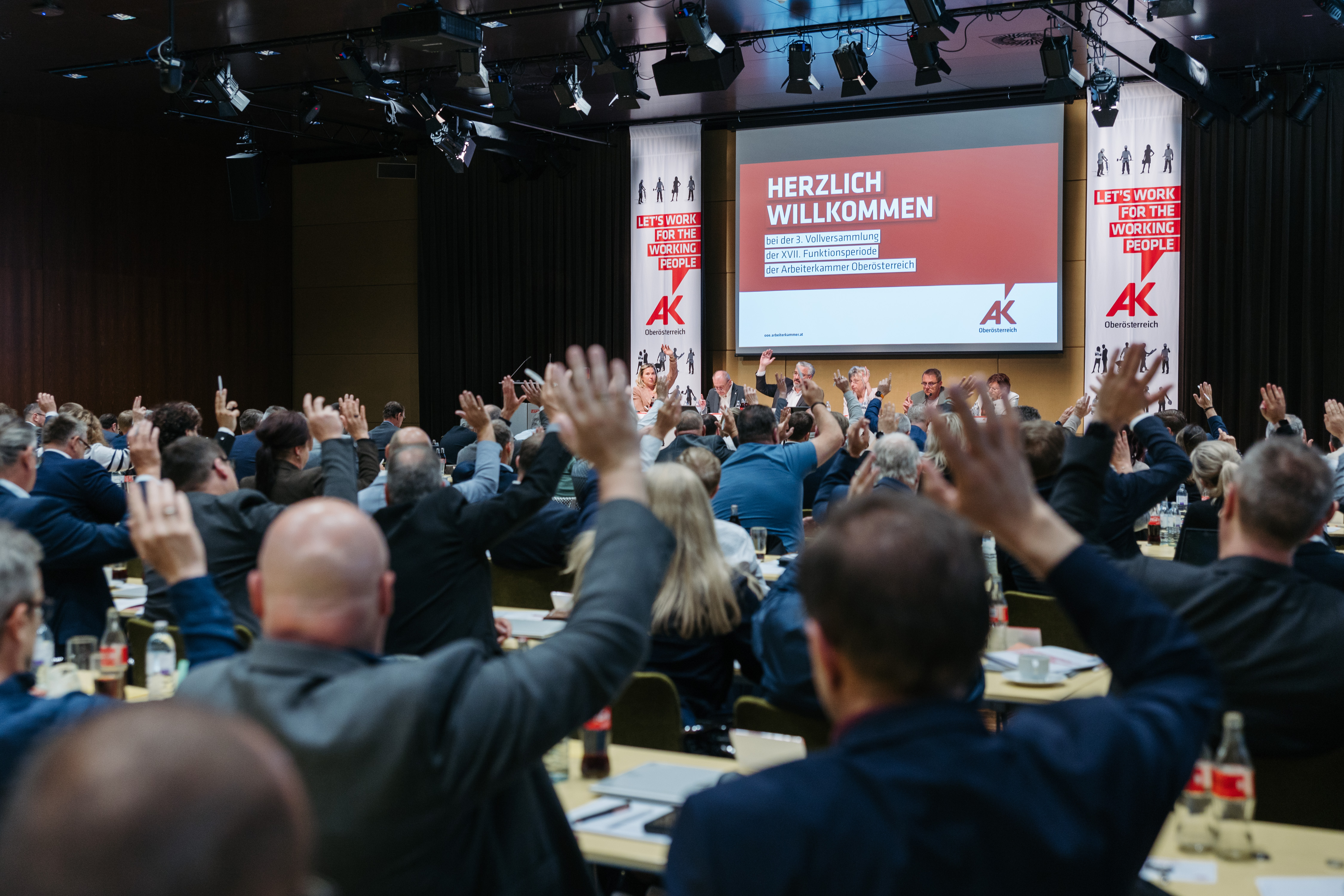 Der heutigen AK-Vollversammlung lagen 28 Resolutionen vor. Im Mittelpunkt der Debatte stand die gemeinsame 80-jährige Erfolgsgeschichte von Gewerkschaften, ÖGB und AK, die maßgeblich dazu beitragen, die sozialpolitische Landschaft Österreichs erfolgreich zu gestalten. Weiters wurden konkrete Verbesserungen im Gesundheits- und Pflegesystem, Konsumentenschutzthemen sowie bessere Arbeitsbedingungen für Arbeitnehmerinnen und Arbeitnehmer behandelt. Anschließend stimmten die 110 Kammerrät:innen aus vier Fraktionen und zwei wahlwerbenden Gruppen über die eingebrachten Resolutionen ab.