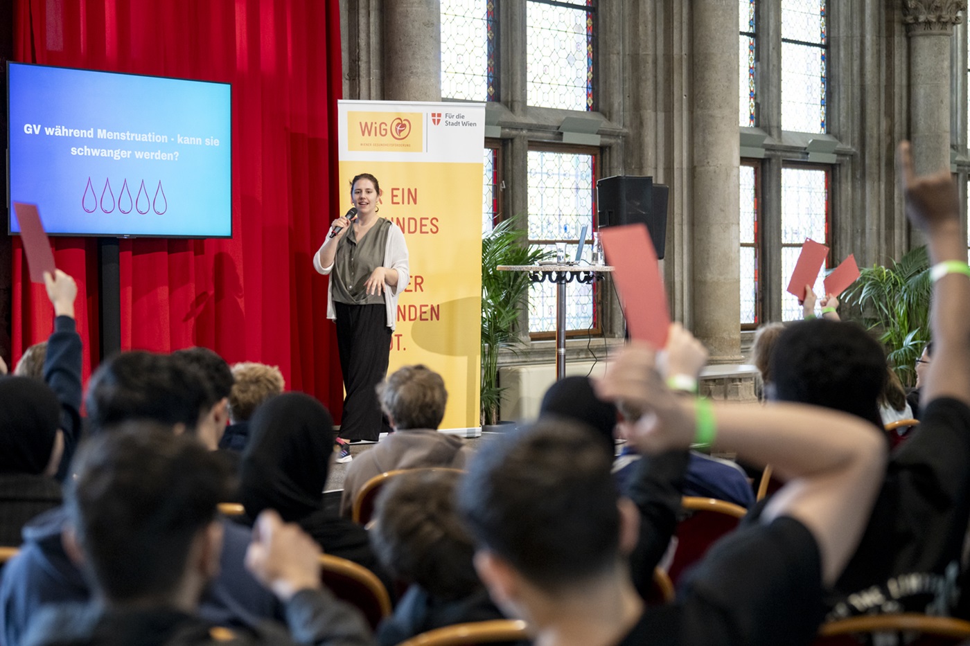 Jährlich veranstaltet die Wiener Gesundheitsförderung – WiG den beliebten Aktionstag „Sex in the City-Hall“ im Wiener Rathaus und setzt damit ein starkes Zeichen für sexuelle Gesundheit von Jugendlichen. Diese Woche war es wieder soweit: Rund 1.000 Wiener Jugendliche und 120 Begleitpersonen aus unterschiedlichsten Wiener Schulen und Einrichtungen der außerschulischen Jugendarbeit nahmen daran teil und haben sich mit Themen wie Liebe, Beziehungen, Rollenbilder und Verhütung auseinandergesetzt. „Wenn es um Sexualität geht, empfinden junge Menschen oft gleichermaßen Neugierde wie Scham. Umso wichtiger sind Veranstaltungen wie ‚Sex in the City-Hall‘, bei der junge Menschen Raum für Fragen und altersgerechte, gut aufbereitete Informationen von Expert*innen erhalten“, erklärt Peter Hacker, Stadtrat für Soziales, Gesundheit und Sport. Die rege Teilnahme von rund 1000 Wiener Jugendlichen freute besonders Dennis Beck, Geschäftsführer der Wiener Gesundheitsförderung – WiG: „Es war schön zu sehen, wie viele Jugendliche sich informiert und eingebracht haben. Unser Konzept ist so angelegt, dass sie sich wohlfühlen und in einem sicheren und vertraulichen Rahmen ihre Fragen und Anliegen teilen können. Für Heranwachsende ist die sexuelle Bildung ein wichtiges Thema, um Selbstvertrauen entwickeln und gesunde Beziehungen führen zu können.“