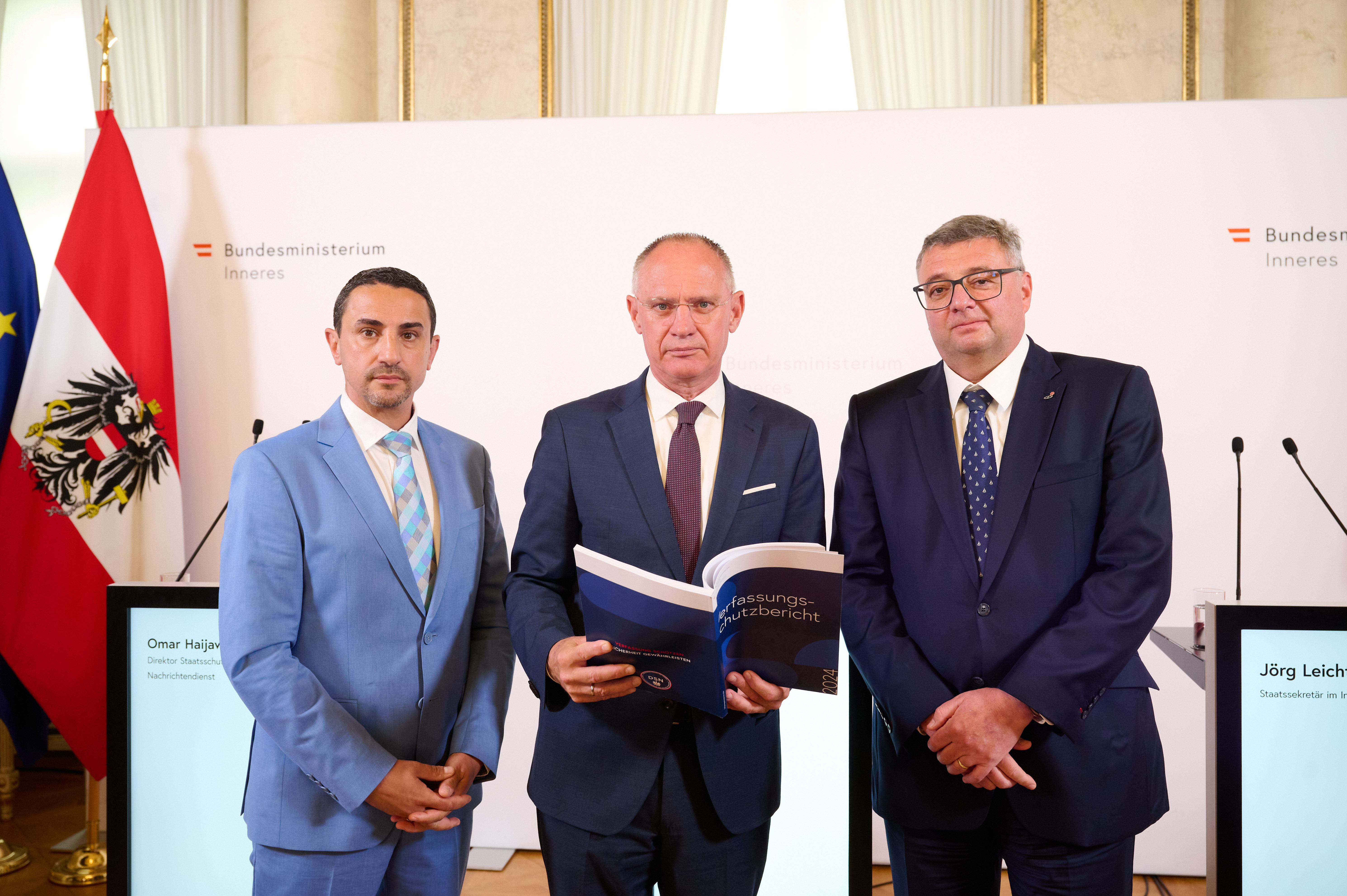 Die Sicherheitslage in Österreich war im Jahr 2024 vielschichtiger und dynamischer denn je – das zeigt der Verfassungsschutzbericht, den Innenminister Gerhard Karner, Staatssekretär Jörg Leichtfried und DSN-Direktor Omar Haijawi-Pirchner am 26. Mai 2025 präsentierten. Bedrohungen treten nicht mehr isoliert, sondern zunehmend vernetzt auf. Der Bericht beleuchtet die wachsenden Herausforderungen in den Aufgabenbereichen der Direktion Staatsschutz und Nachrichtendienst (DSN) und der Landesämter Staatsschutz und Extremismusbekämpfung (LSE). Dazu zählen unter anderem Extremismus, Terrorismus, digitale Bedrohungen, Spionage und Desinformation.