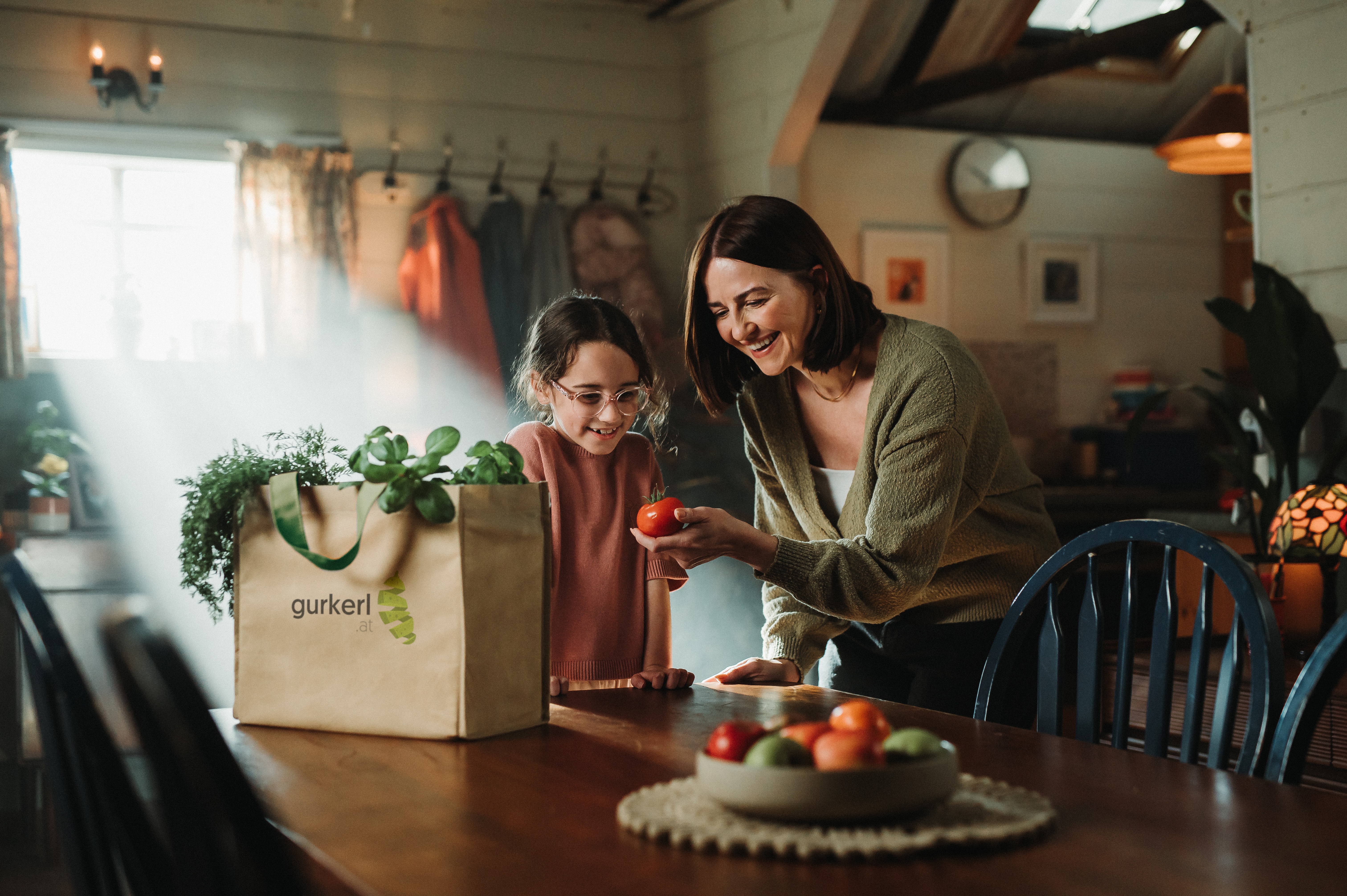 Herzstück der Kampagne ist ein Film, der den Moment der Gurkerl-Lieferung in Szene setzt. Eine Familie packt ihren Wocheneinkauf aus – doch statt eines gewöhnlichen Auspackens wird die Herkunft jedes Produkts unmittelbar sichtbar: Die Hand, die ins Gurkerl-Sackerl greift, landet direkt bei den Produzent:innen – etwa in der Bäckerei, wo ein frisch gebackenes Brot überreicht wird, beim Fleischhauer, der ein sorgfältig verpacktes Steak reicht, oder bei der regionalen Biogärtnerei, wo sonnengereifte Paradeiser direkt von der Rispe gepflückt werden.