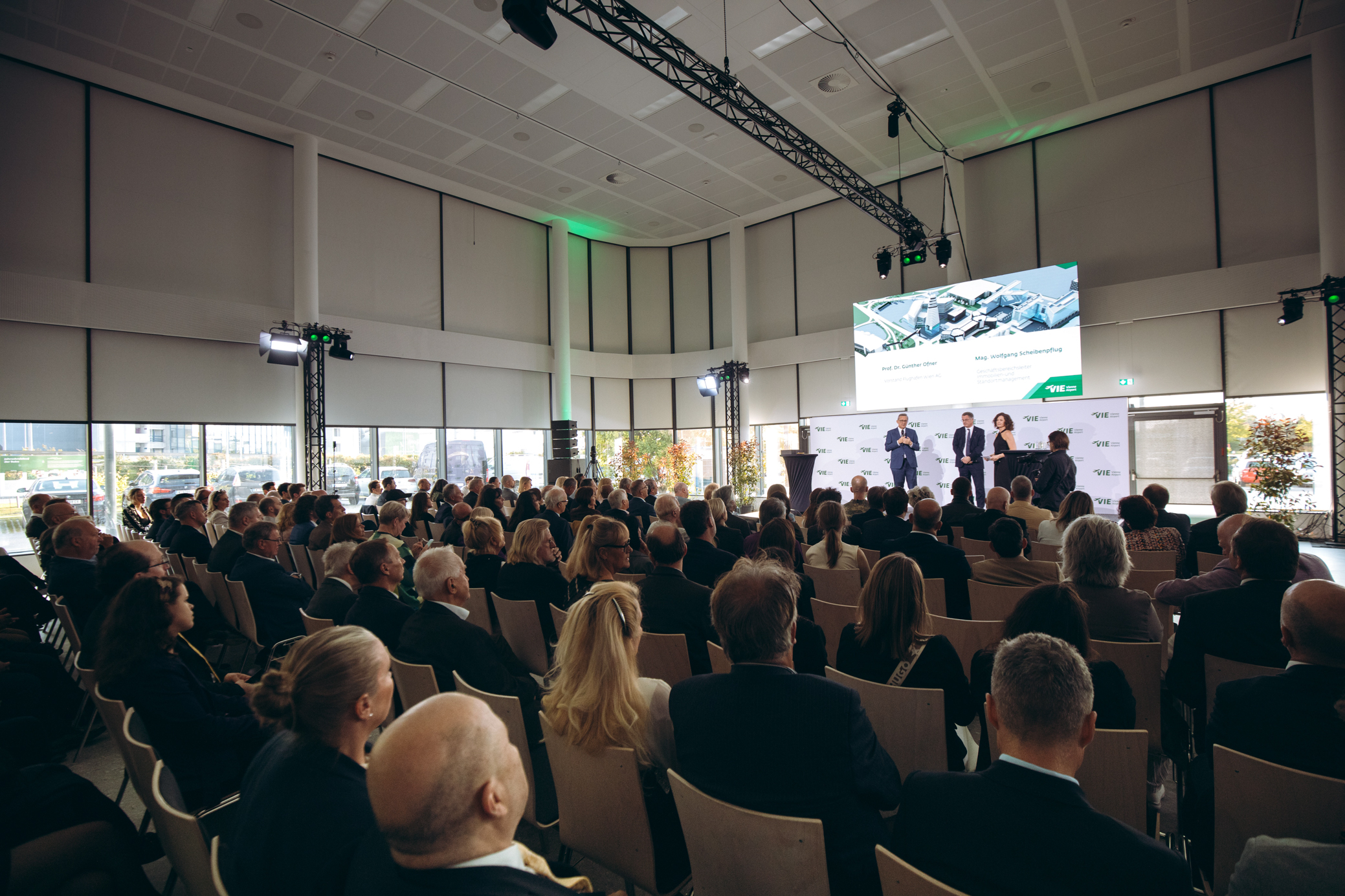 Über 600 interessierte Gäste aus den Bereichen Wirtschaft, Politik, Kultur und Gesellschaft verfolgten die spannenden Beiträge mit Statements von Flughafen Wien-Vorstand Dr. Günther Ofner, sowie von Mag. Wolfgang Scheibenpflug MRICS, Geschäftsbereichsleiter Immobilien- und Standortmanagement der Flughafen Wien AG. Ein Highlight des Abends war die Keynote von Militärexperte Oberst des Generalstabsdienstes Dr. Markus Reisner, Leiter des Instituts für Offiziersausbildung an der Theresianischen Militärakademie, über aktuelle geopolitische Entwicklungen und deren Bedeutung für Wirtschaft und Gesellschaft. Für musikalische Unterhaltung sorgte die österreichische Künstlerin Caroline Kreutzberger mit ihrer Band. Durch den Abend führte Moderatorin Sandra König.