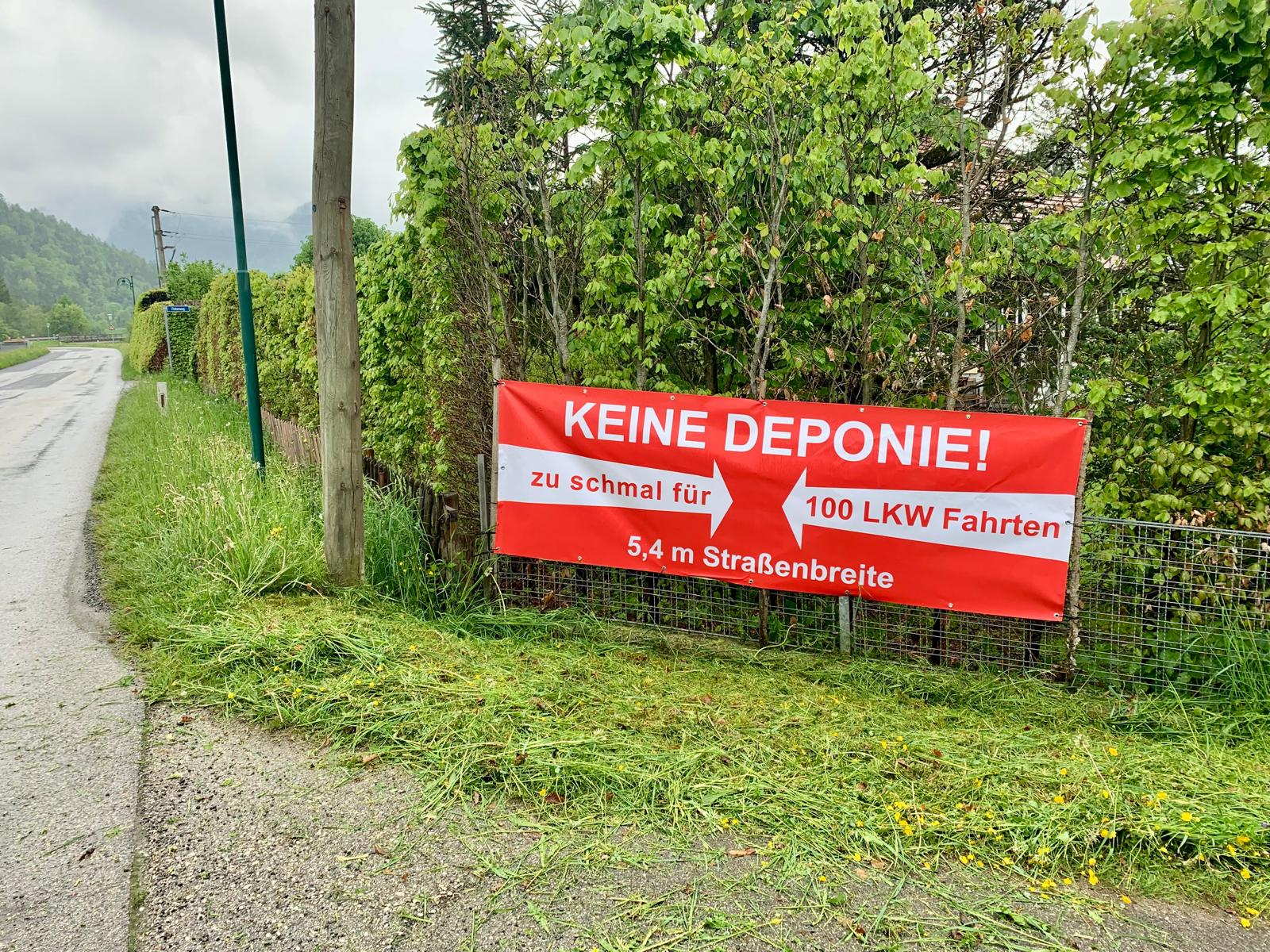 Die geplante Errichtung der Deponie würde bis zu 100 zusätzliche LKW-Fahrten pro Tag auf einer engen Gemeindestraße ohne Geh- und Radweg mit sich bringen. Es handelt sich dabei um einen Streckenbereich, der von Kindern als Schulweg, als Wohn- sowie landwirtschaftlich genutzte Straße, für die öffentliche Busstrecke nach Salzburg, sowie als Teil des Salzkammergut-Radwegs genutzt wird. Zwei Verkehrsgutachten im Auftrag der Bürgerinitiative und der Gemeinde bestätigen: Die Straße (Alte Bundesstraße) ist für den Schwerverkehr der Deponie zu eng. Dennoch wurde in erster Instanz eine Betriebsbewilligung erteilt. Die dieser Bewilligung zugrundeliegenden Gutachten umfassen jedoch ausschließlich den Betrieb selbst und die zum Betriebsgrundstück zählende 125 Meter lange Zufahrt bis zur Alten Bundesstraße. Nicht entschieden wurde über die Zulässigkeit der Zu- und Abfahrten des zu erwartenden Schwerverkehrs auf der laut Gutachten zu engen Alten Bundesstraße. Der im Bewilligungsverfahren beigezogene Umweltmediziner hält fest, dass „aus sozial- und bevölkerungsmedizinischer Sicht, die direkte Anlieferung über die B158 (Wolfgangsee Straße) am sinnvollsten wäre (ohne Durchfahrung des Siedlungsgebietes / auf der Alten Bundesstraße...)“.