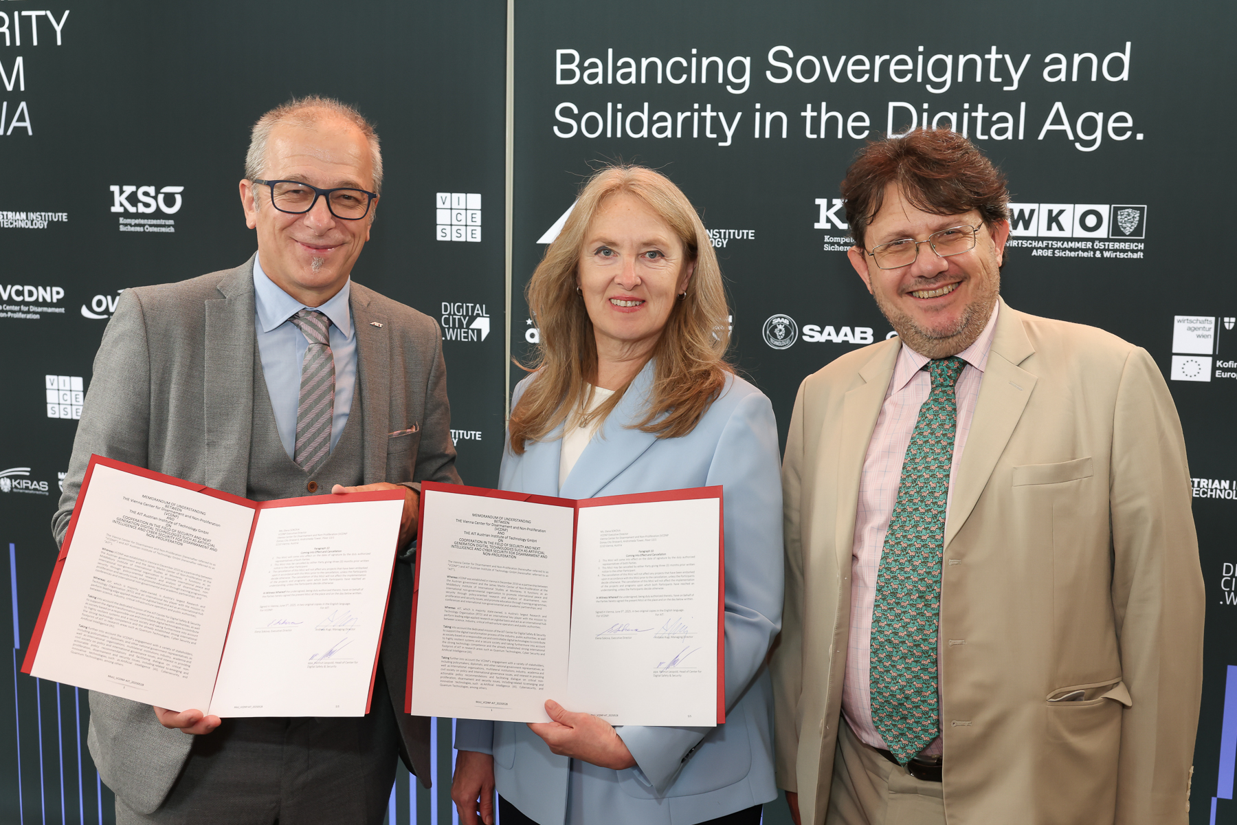 Im Rahmen des zweiten Konferenztages des International Digital Security Forum (IDSF) im Wiener MuseumsQuartier wurde heute ein bedeutender Schritt zur weiteren Verstärkung der internationalen Zusammenarbeit im Bereich der digitalen Sicherheit gesetzt: Das AIT Austrian Institute of Technology unterzeichnete je ein Memorandum of Understanding (MoU) mit dem Vienna Center for Disarmament and Non-Proliferation (VCDNP) sowie mit dem World Institute for Nuclear Security (WINS).