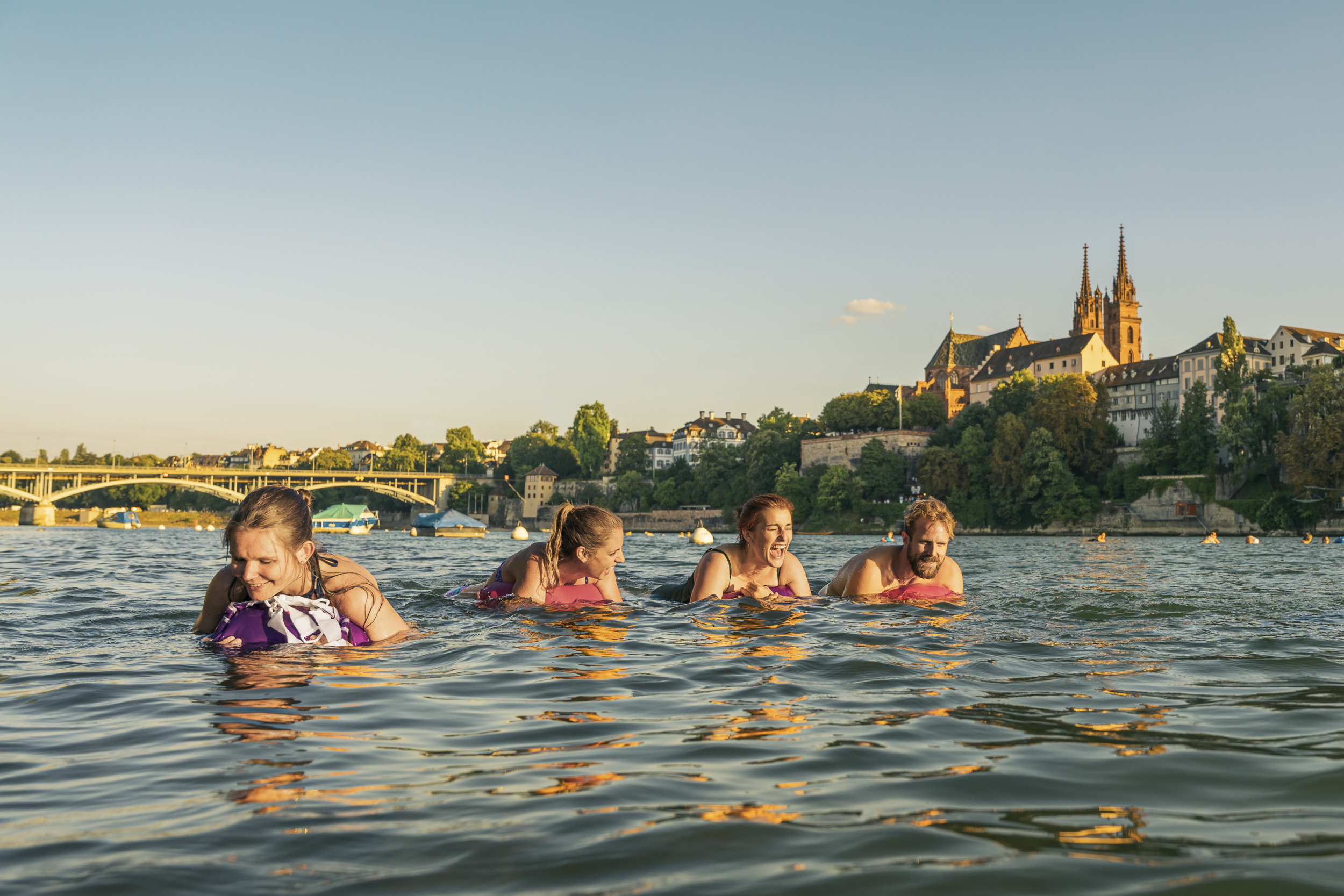 In Basel, dem nördlichsten Punkt der Grand Tour, erwartet Besucherinnen und Besucher ein ganz besonderes Erlebnis: das Rheinschwimmen. Im Sommer lassen sich Tausende im Fluss treiben – mit dem „Wickelfisch“ am Arm. Die Rheinufer mit Buvetten und Liegewiesen verbinden Großstadtatmosphäre mit Badelust.