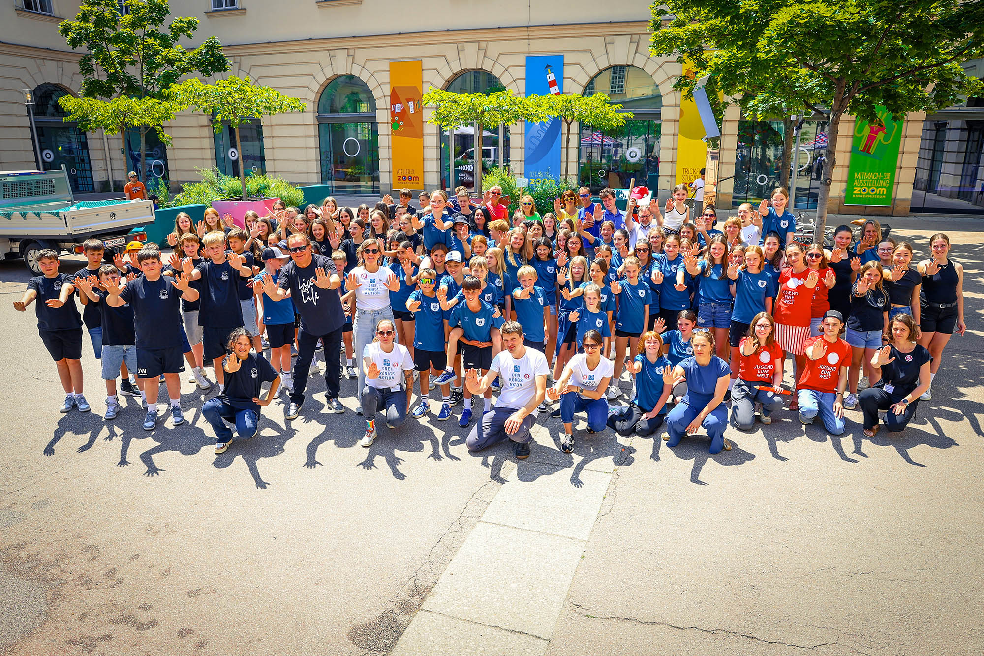 Mit einer großen Tanzaktion haben über hundert Kinder im Wiener MuseumsQuartier ein starkes Zeichen gegen Kinderarbeit gesetzt. Die Performance war Höhepunkt der Tanz-Challenge #tanzengegenkinderarbeit, an der sich Kinder, Jugendliche und auch Erwachsene aus ganz Österreich beteiligten. Schulklassen aus Ried (OÖ) und aus Hartberg (Stmk.) sind extra zur Präsentation ins Wiener MuseumsQuartier angereist. Unterstützt wurde ihr Anliegen von Kindern aus betroffenen Ländern, die mit Videobotschaften von Projektpartner*innen der Dreikönigsaktion präsent waren. Mit dabei war auch Ewald Pfleger, Mastermind von Opus, als Ehrengast. Er stellte den Welthit „Live is Life“ als musikalische Grundlage für die Tanzaktion gegen Kinderarbeit zur Verfügung. Beim Aktionstag wurde zu Beginn auch der Opfer des unfassbaren Amoklaufes am Grazer BORG Dreierschützengasse gedacht.