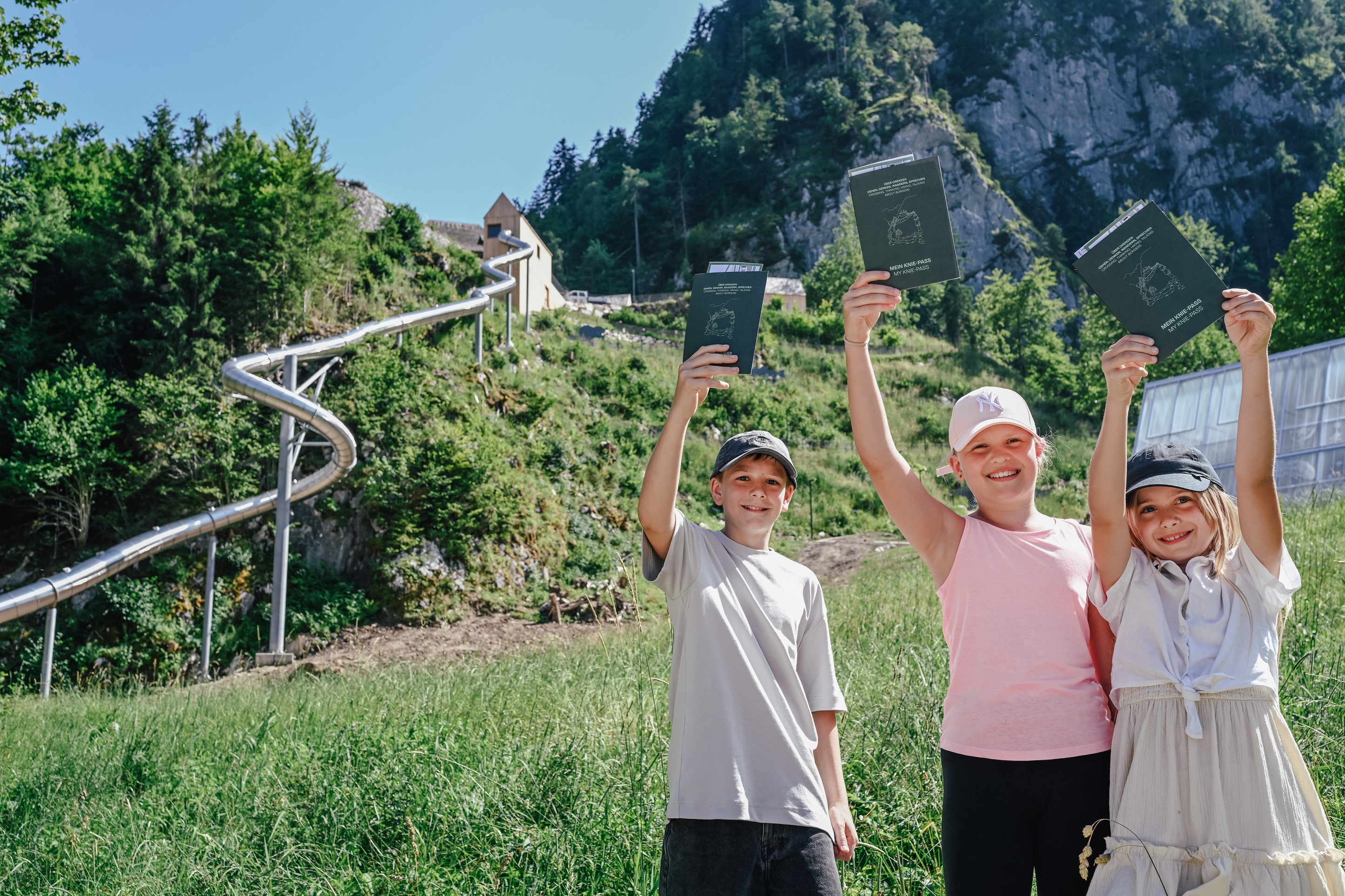 Auf alle Abenteuerlustigen, die den Weg hinunter ins Tal nicht zu Fuß zurücklegen möchten, wartet ab sofort ein absoluter Adrenalinkick: Nämlich die mit 150 Metern längste und mit 56 Höhenmetern höchste Röhren-Trockenrutsche der Alpen! Spektakulär schlängelt sie sich von der historischen Festung hinunter ins Tal und bietet ein einzigartiges Erlebnis für Jung und Alt: In bequemen Filz-Sitzsäcken geht es auf der Rutsche mit Höchstgeschwindigkeiten von bis zu 35 km/h zuerst durch einen horizontalen Kreisel, bevor die rasante Rutschpartie im Indoor-Spielplatz des Besucherzentrums endet. Für zusätzliche Spannung sorgen spezielle Licht- und Soundeffekte sowie eine Zeitnehmung in der Rutsche. Geeignet ist die Rutsche für Kinder ab einer Mindestkörpergröße von 130 Zentimetern. Die Rutsche kann bei jeder Witterung benützt werden.