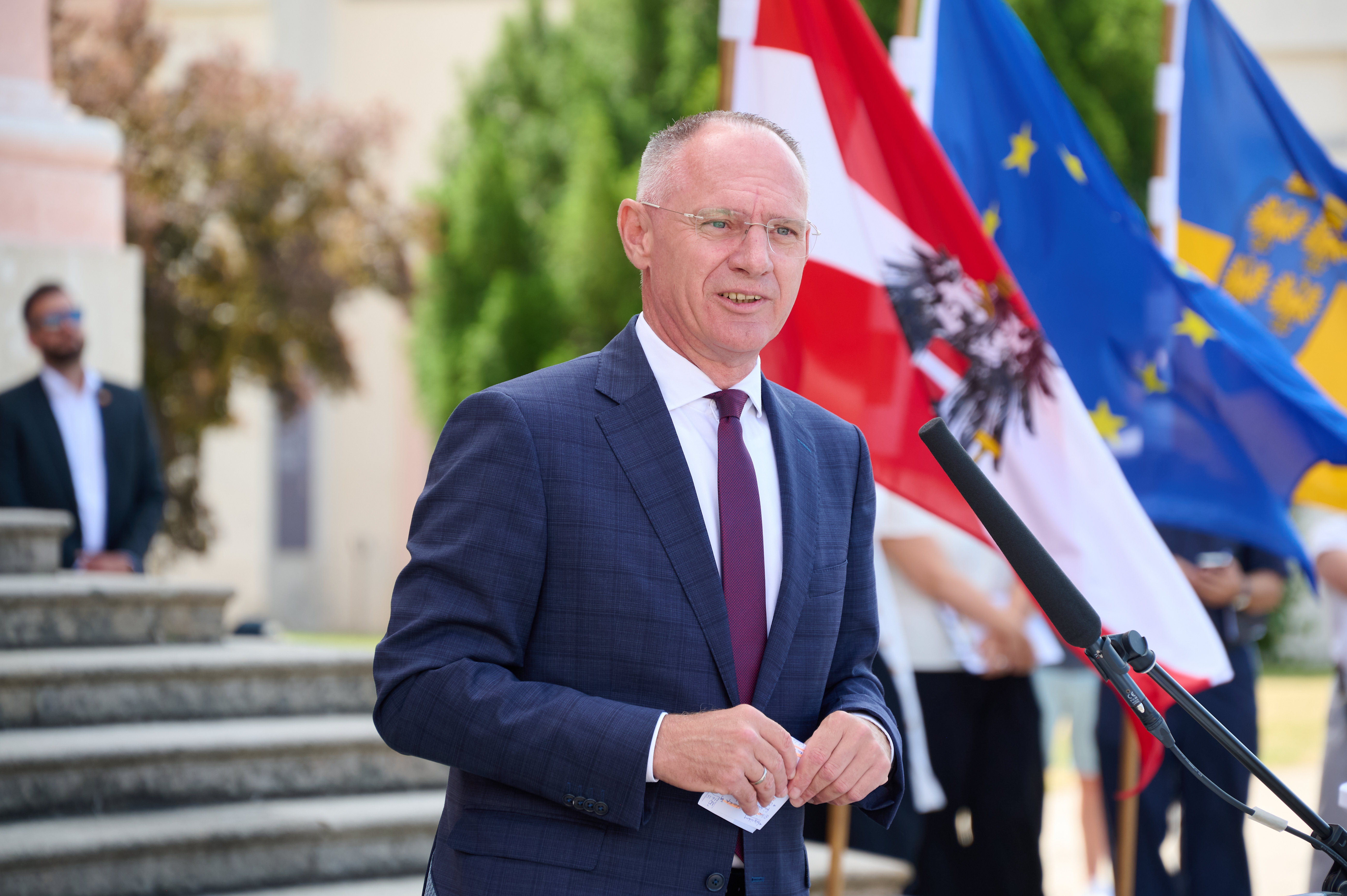 Feierliche Ausmusterung und Angelobung mit Innenminister Karner, Bundespolizeidirektor Takács, Landespolizeidirektor Popp und Landesrat Schleritzko