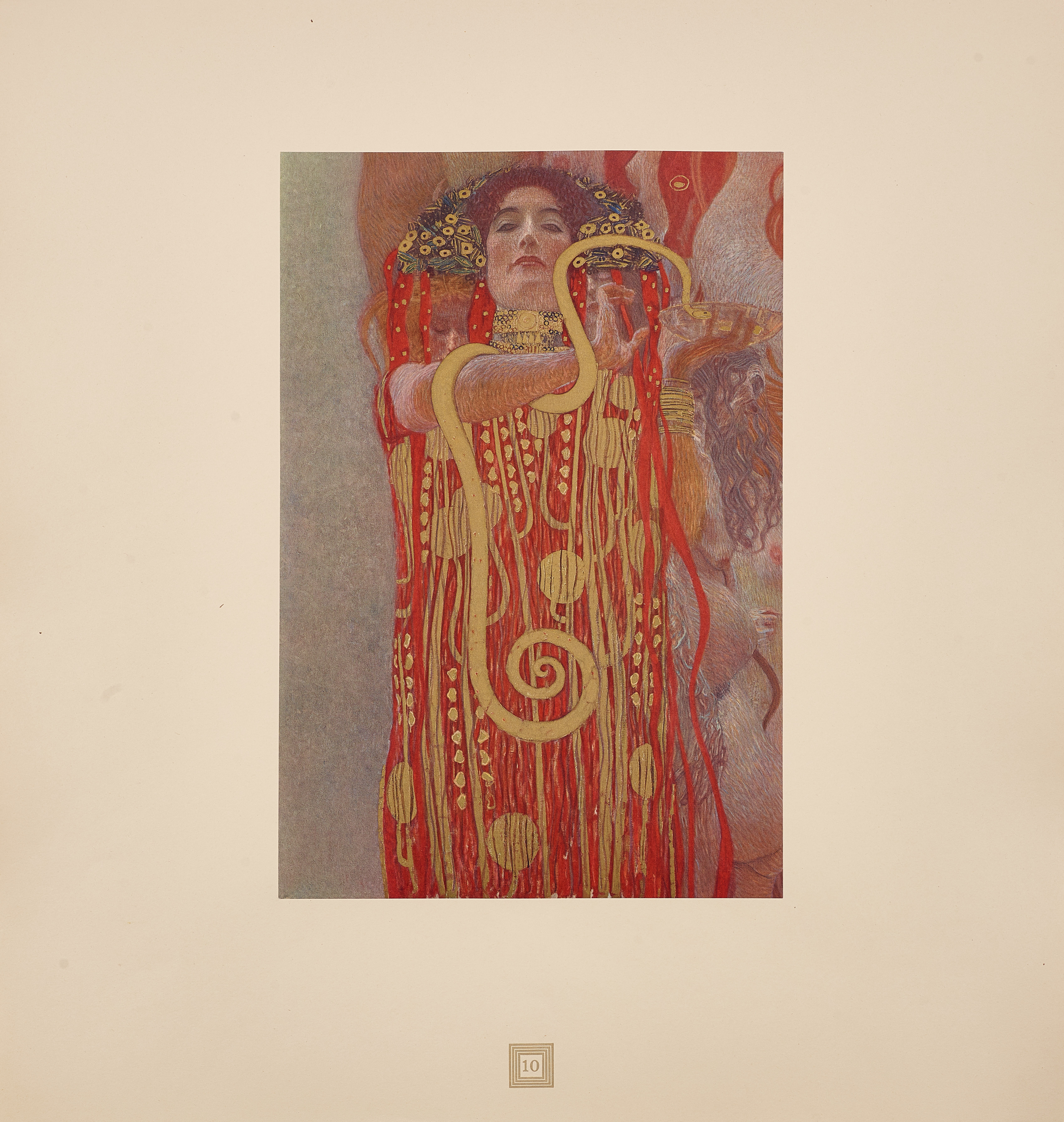 Zu den verbrannten Werken zählen neben den drei Fakultätsbildern für den großen Festsaal der Universität Wien mit den zugehörigen Kompositionsentwürfen u. a. die Supraportenbilder Die Musik (1897/98) und Schubert am Klavier (1899) aus dem Palais Nikolaus Dumbas an der Wiener Ringstraße und die Gemälde Der goldene Apfelbaum (1903), Bauerngarten mit Kruzifix (1912), BildnisWally (1916), Freundinnen II (1916/17), Gartenweg mit Hühnern (1916) oder Leda (1917) aus der zwangsenteigneten Sammlung August und Serena Lederers.