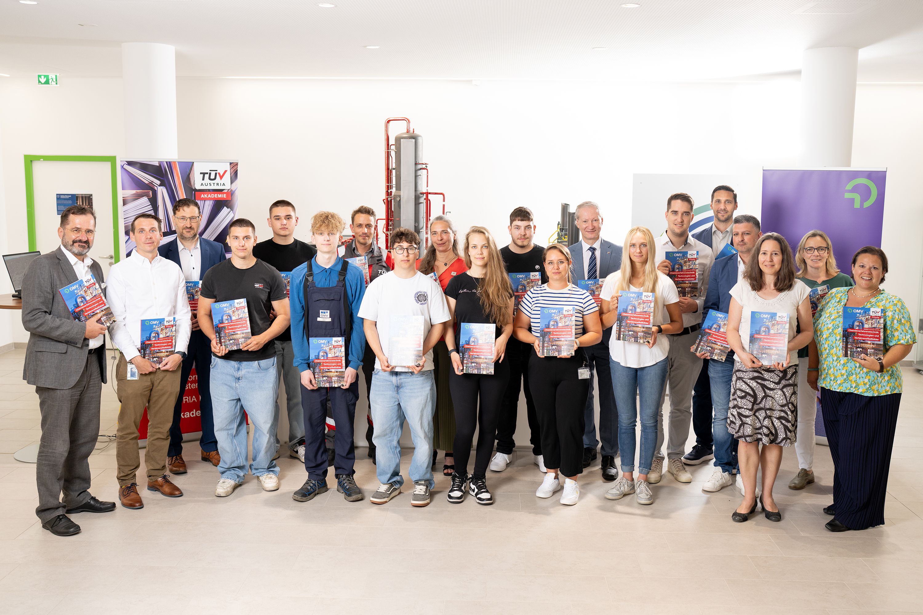 Um eine starke Signalwirkung ging es Dr. Stefan Haas (CEO TÜV AUSTRIA Group): „Gerade in wirtschaftlich herausfordernden Zeiten braucht es den Weitblick und eine langfristige Orientierung. Das Herzstück unternehmerischer Aktivität ist dabei die Aus- und Weiterbildung. Wir möchten mit dem neuen Handbuch jungen Menschen ein nützliches Hilfsmittel an die Hand geben, das es in dieser Form noch nicht gab. Spezialisierte Expert:innen werden am Arbeitsmarkt gefragt und gebraucht. In der engen Zusammenarbeit zwischen TÜV AUSTRIA und OMV möchten wir einen Beitrag für die wirtschaftliche Zukunft und den Wirtschaftsstandort leisten.“
