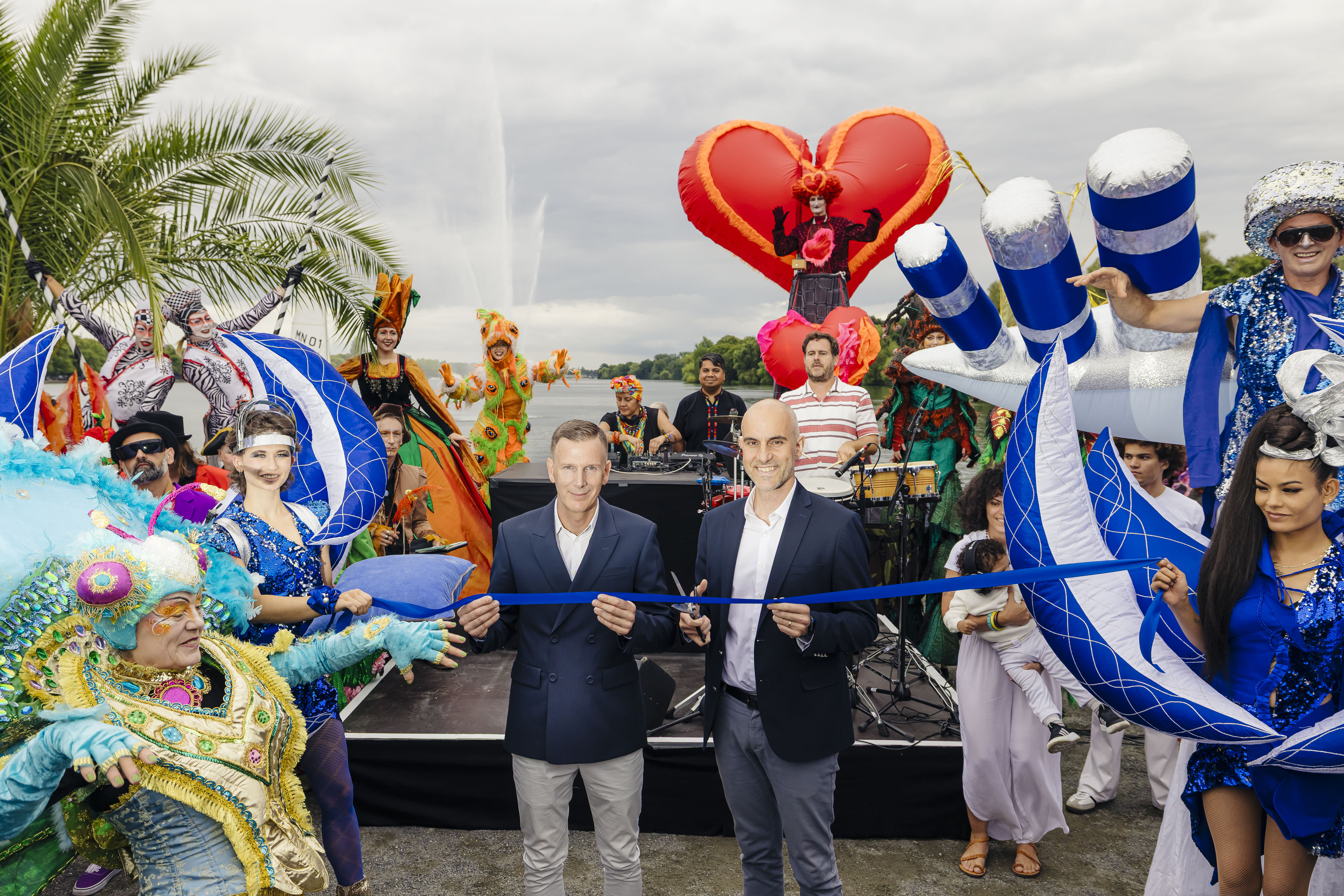 Bei bester Stimmung und sommerlich-frischen 20 Grad wurde das Maschseefest um 18:00 Uhr symbolisch eröffnet. Umgeben von farbenfrohen Stelzenläufern, Akrobaten und Live-Musikern durchschnitten Hannovers Oberbürgermeister Belit Onay und André Lawiszus, Geschäftsführer der Hannover Veranstaltungs GmbH (HVG), feierlich das blaue Eröffnungsband - begleitet von zahlreichen Gästen.