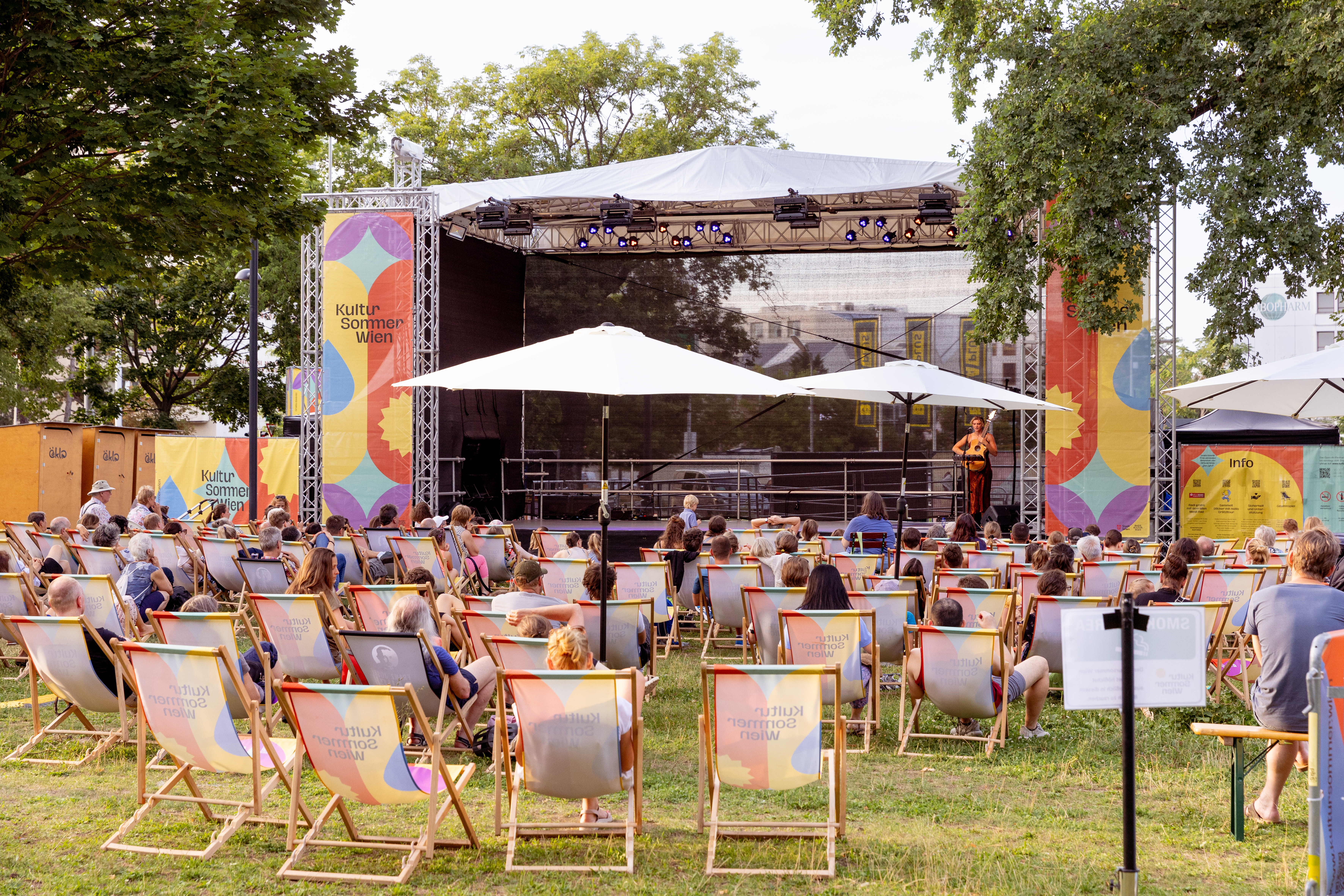Bereits seit fünf Wochen bespielt der Kultursommer Wien Pop-up-Bühnen von donnerstags bis sonntags in verschiedenen Bezirken Wiens und präsentiert ein umfangreiches Kulturangebot. Mit künstlerischer Vielfalt aus den Bereichen Musik, Kabarett, Literatur, Tanz, Theater und Zeitgenössischem Zirkus von mehr als 2.000 Künstler:innen geht es nun voller Vorfreude in die letzte Festivalwoche. Trotz wechselhafter Wetterlage wird erneut mit insgesamt über 80.000 Besucher:innen gerechnet. Laut Umfragen ist der Kultursommer Wien für mehr als die Hälfte des Publikums schon zum sommerlichen Fixpunkt geworden, während etwa 40% zum ersten Mal das kostenlose Kulturprogramm nutzen.