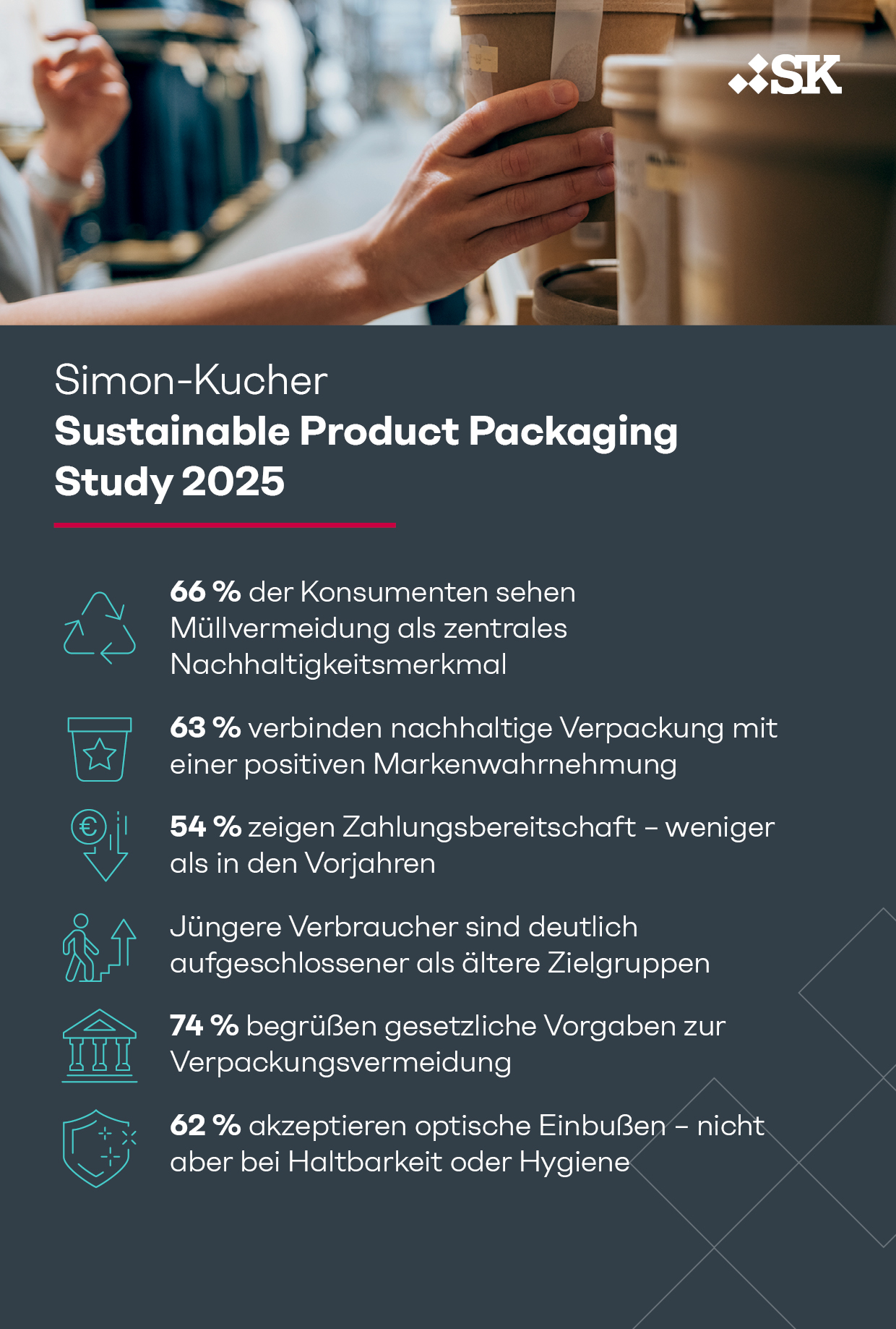 *Über die Studie: Die repräsentative Studie "Sustainable Product Packaging" wurde im Mai 2025 zum fünften Mal von Simon-Kucher in Zusammenarbeit mit dem Marktforschungsinstitut YouGov durchgeführt. Befragt wurden 2.031 Konsumenten in Deutschland zu ihren Einstellungen, Erwartungen und Zahlungsbereitschaften rund um nachhaltige Verpackungen.