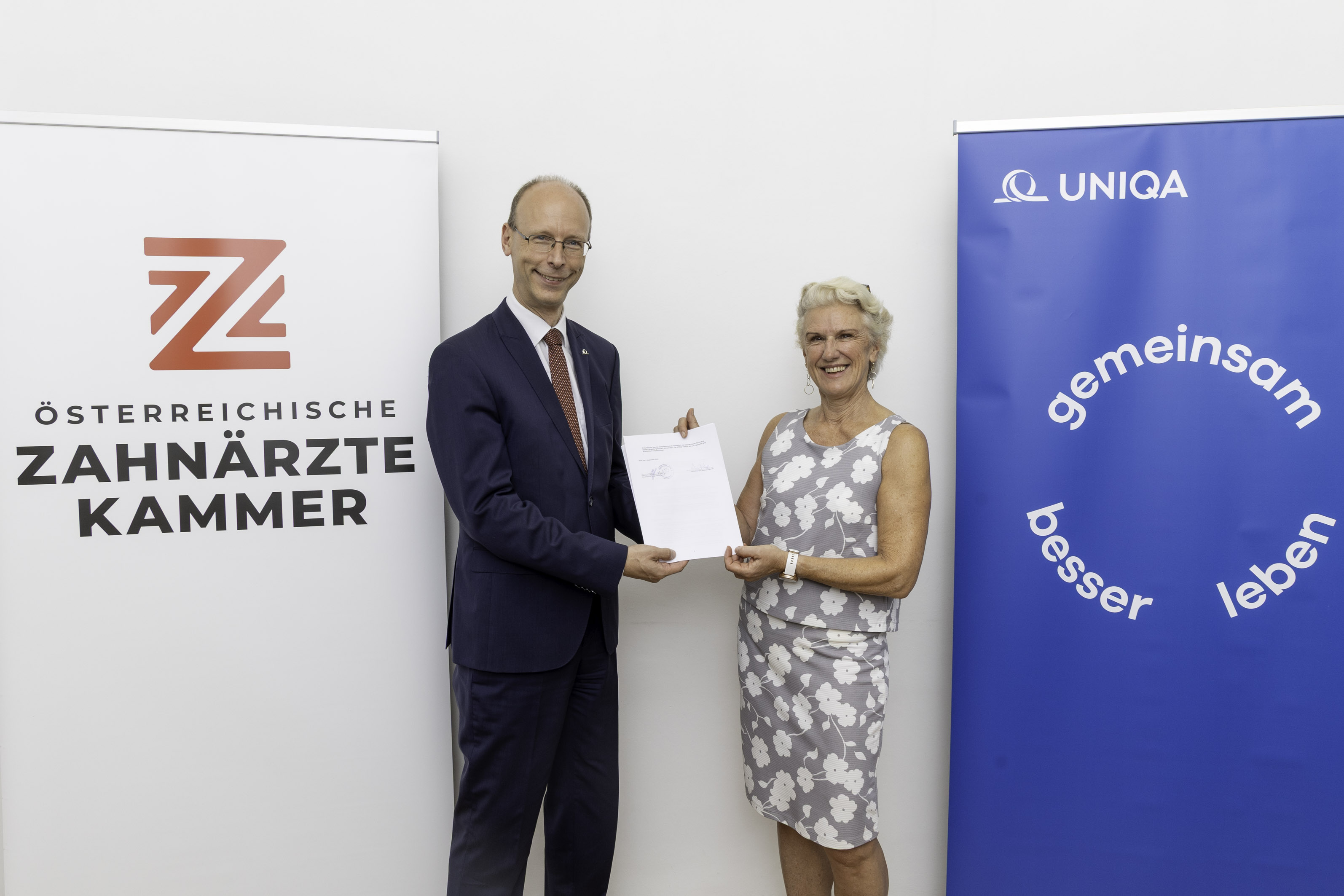 „Die Kooperation mit UNIQA unterstreicht das Bestreben der ÖZÄK, ihren Servicecharakter einerseits gegenüber ihren Mitgliedern und andererseits auch gegenüber den Patient:innen zu stärken. Zudem kann so die zahnmedizinische Prävention forciert werden,“ zeigt sich auch Birgit Vetter-Scheidl, Präsidentin der ÖZÄK, erfreut.