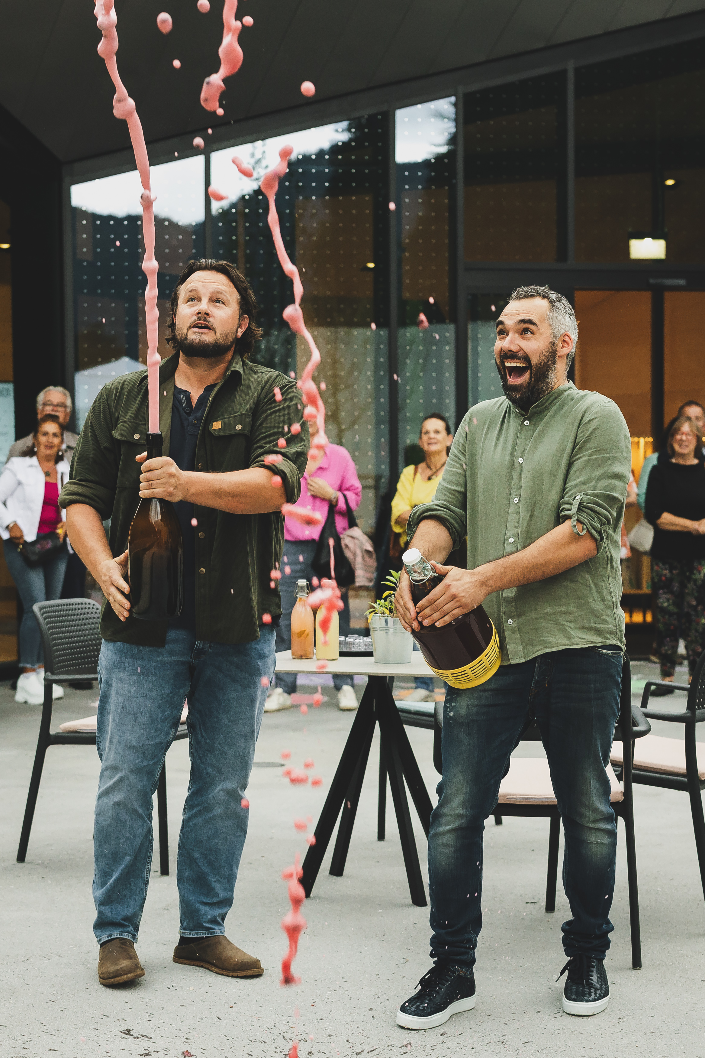 In enger Zusammenarbeit mit der Ernährungswissenschafterin und Fermentationsexpertin Karin Buchart haben sich die beiden auf die Suche nach „lebendigen Lebensmitteln“ gemacht und diese rund um das Fort Kniepass auch gefunden. Bereits im Frühjahr wurden erste Projekte umgesetzt: etwa ein hausgemachter Apfelessig, der in Glasballons reifte und nun in Drahtbügel-Flaschen bereitsteht. Verfeinert mit Kräutern, Gewürzen und Früchten entstehen daraus belebende Oxymele – fermentierte Kräuterauszüge mit positiven Effekten auf Verdauung und Kreislauf, die sich auch hervorragend als natürliches Elektrolytgetränk eignen.