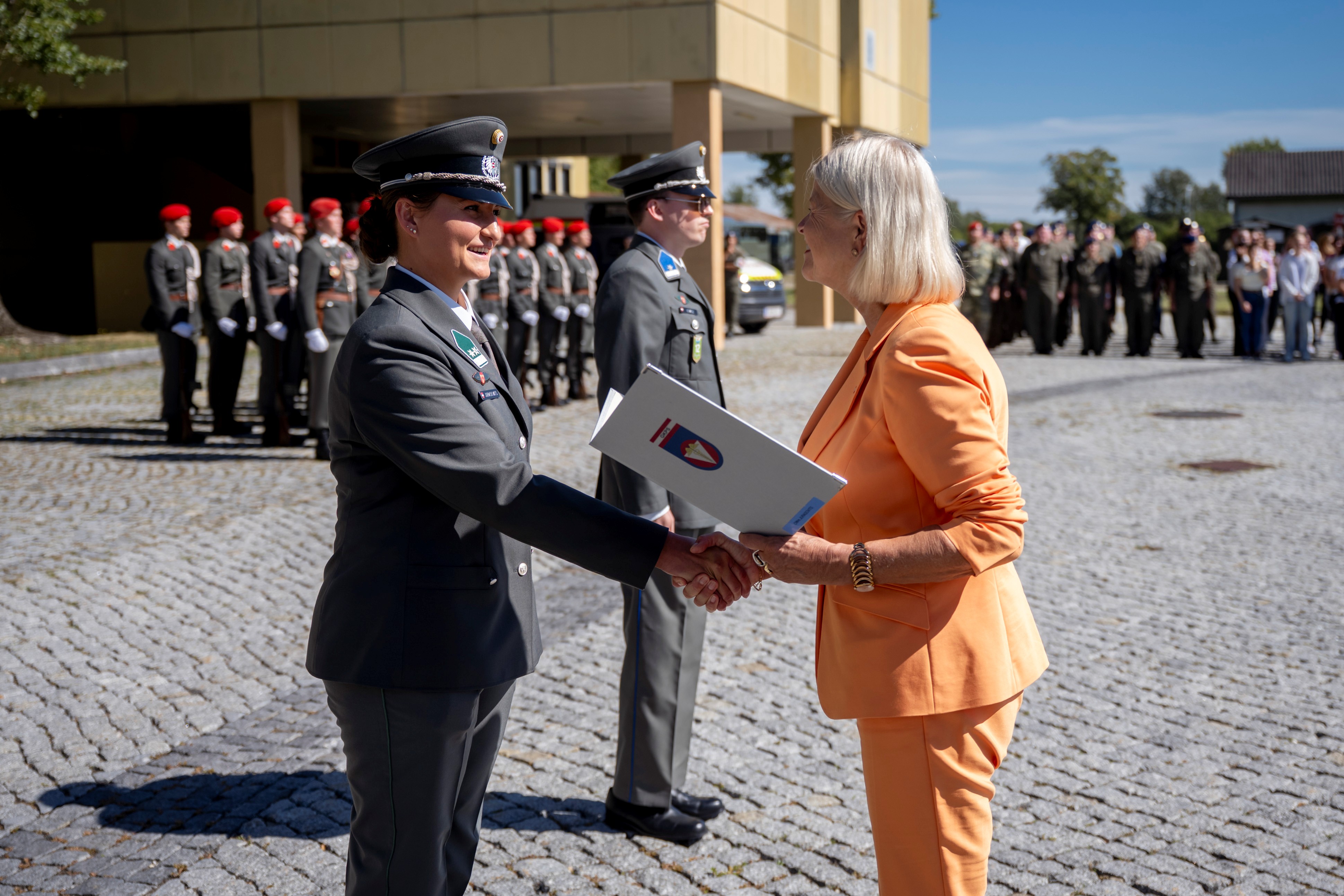 Bundesministerin Tanner überreichte Diplome an 18 Sanitätsunteroffiziere und diplomierte Gesundheits- und Krankenpfleger des Jahrganges „Lazarus“. Der Name wurde in Anerkennung des Militärischen und Hospitalischen Ordens des Heiligen Lazarus von Jerusalem, dessen Tradition in der humanitären Hilfe, im Sanitätswesen und im Katastrophenschutz bis ins Mittelalter zurückreicht, gewählt.
