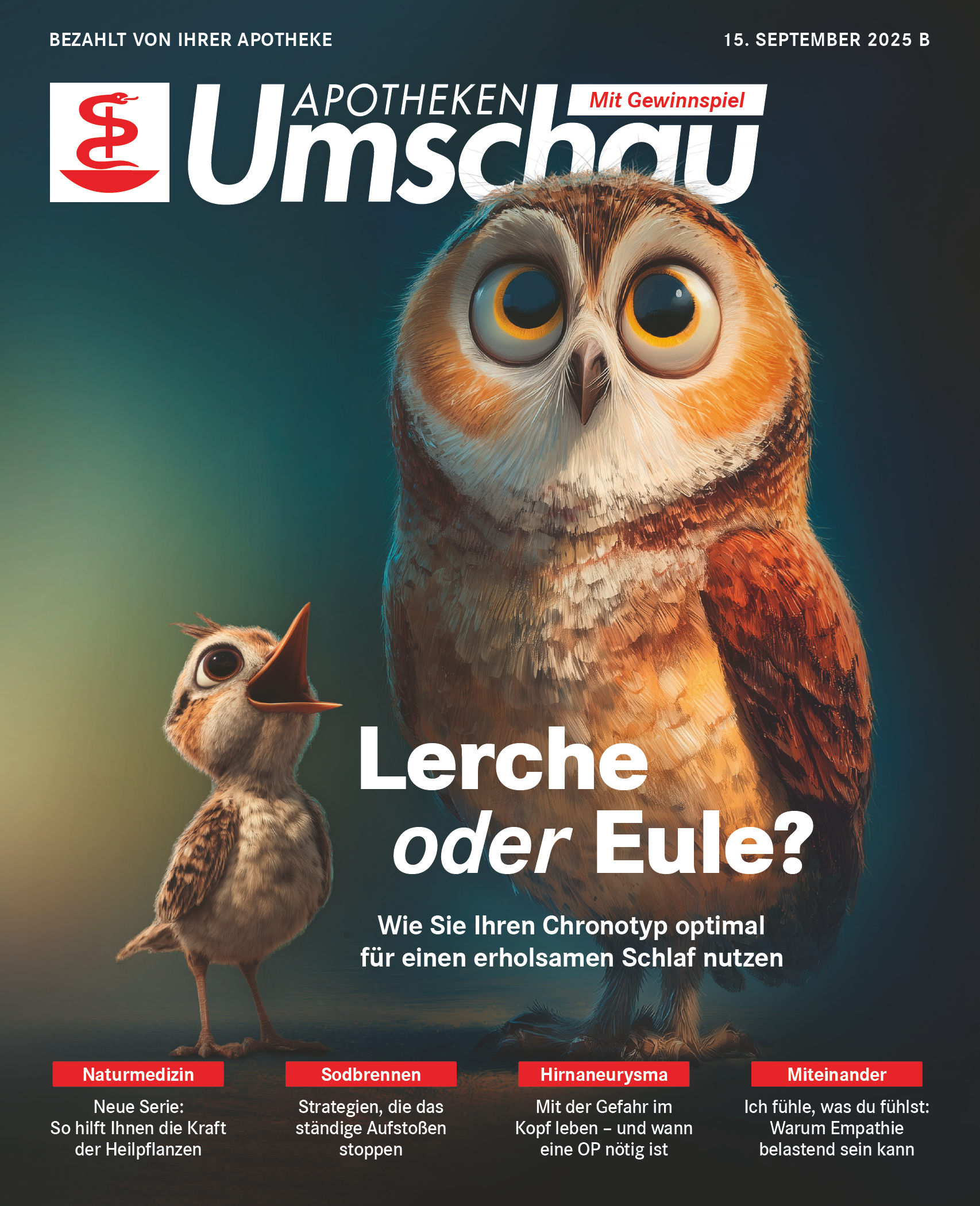 Diese Meldung ist nur mit Quellenangabe zur Veröffentlichung frei. Das Gesundheitsmagazin "Apotheken Umschau" 9B/2025 ist aktuell in den meisten Apotheken auch in Österreich erhältlich. Viele weitere interessante Gesundheits-News gibt es unter https://www.apotheken-umschau.de sowie auf Facebook, Instagram und YouTube.