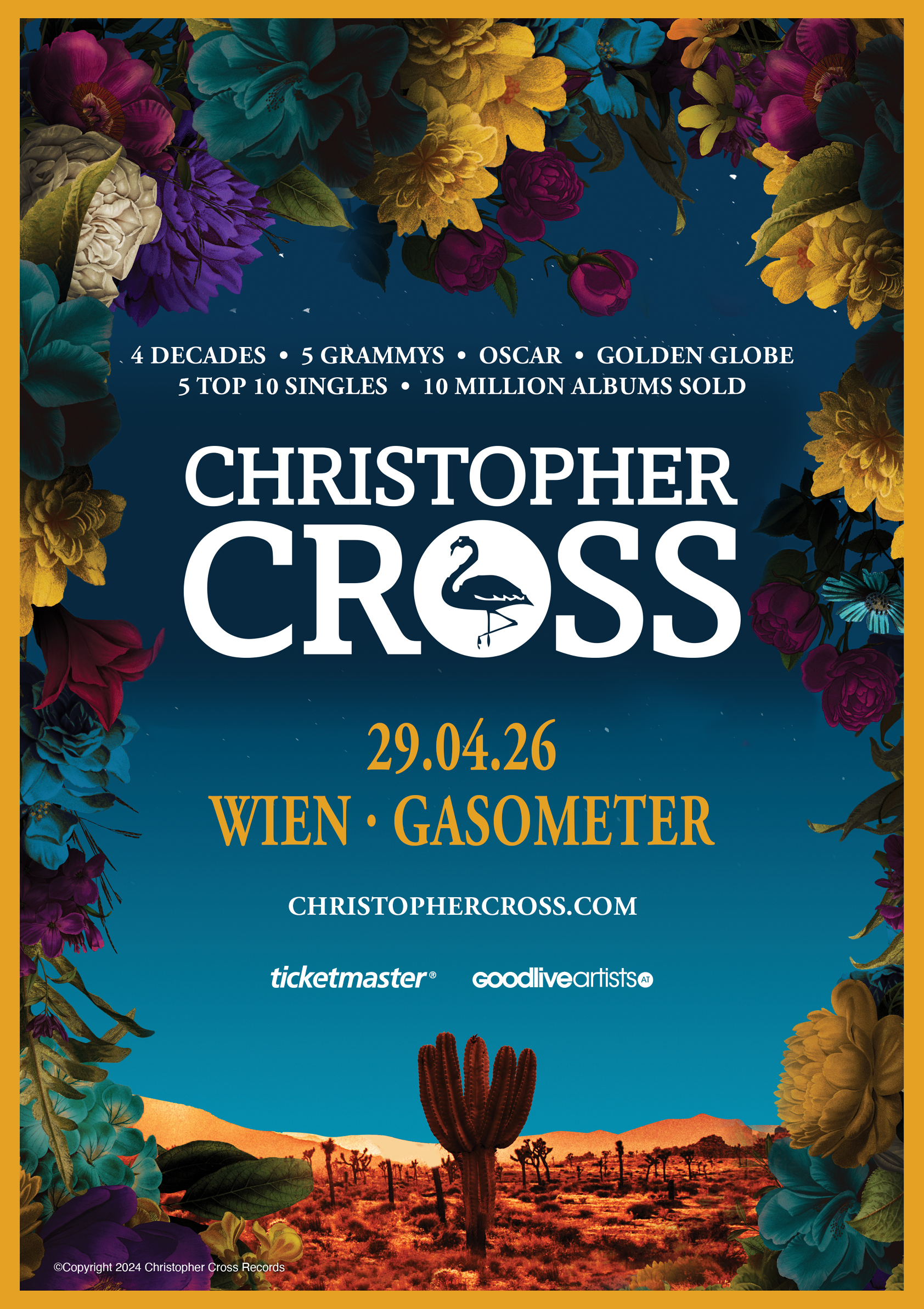 Christopher Cross, einer der erfolgreichsten Singer-Songwriter der letzten Jahrzehnte, kommt am 29. April 2026 in die Raiffeisen Halle des Wiener Gasometers. Bekannt wurde er 1980 mit seinem Debütalbum, das ihm gleich fünf Grammys einbrachte – darunter als erster Künstler überhaupt die begehrten „Big Four“: Album des Jahres, Song des Jahres („Sailing“), Aufnahme des Jahres und Bester neuer Künstler.