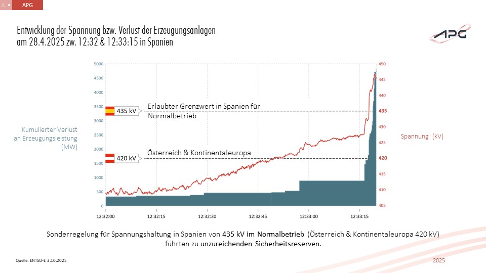 „In Spanien hat man über Jahre hinweg Netzanschlussbedingungen für Kraftwerke nicht aktualisiert. In Österreich sind wir aufgrund unserer modernen Netzanschlussbedingungen bzw. auch durch die umgesetzte automatische Spannungsregelung der im Übertragungsnetz angeschlossenen Donaukraftwerke bestmöglich aufgestellt“, so APG-Vorstandssprecher Gerhard Christiner.