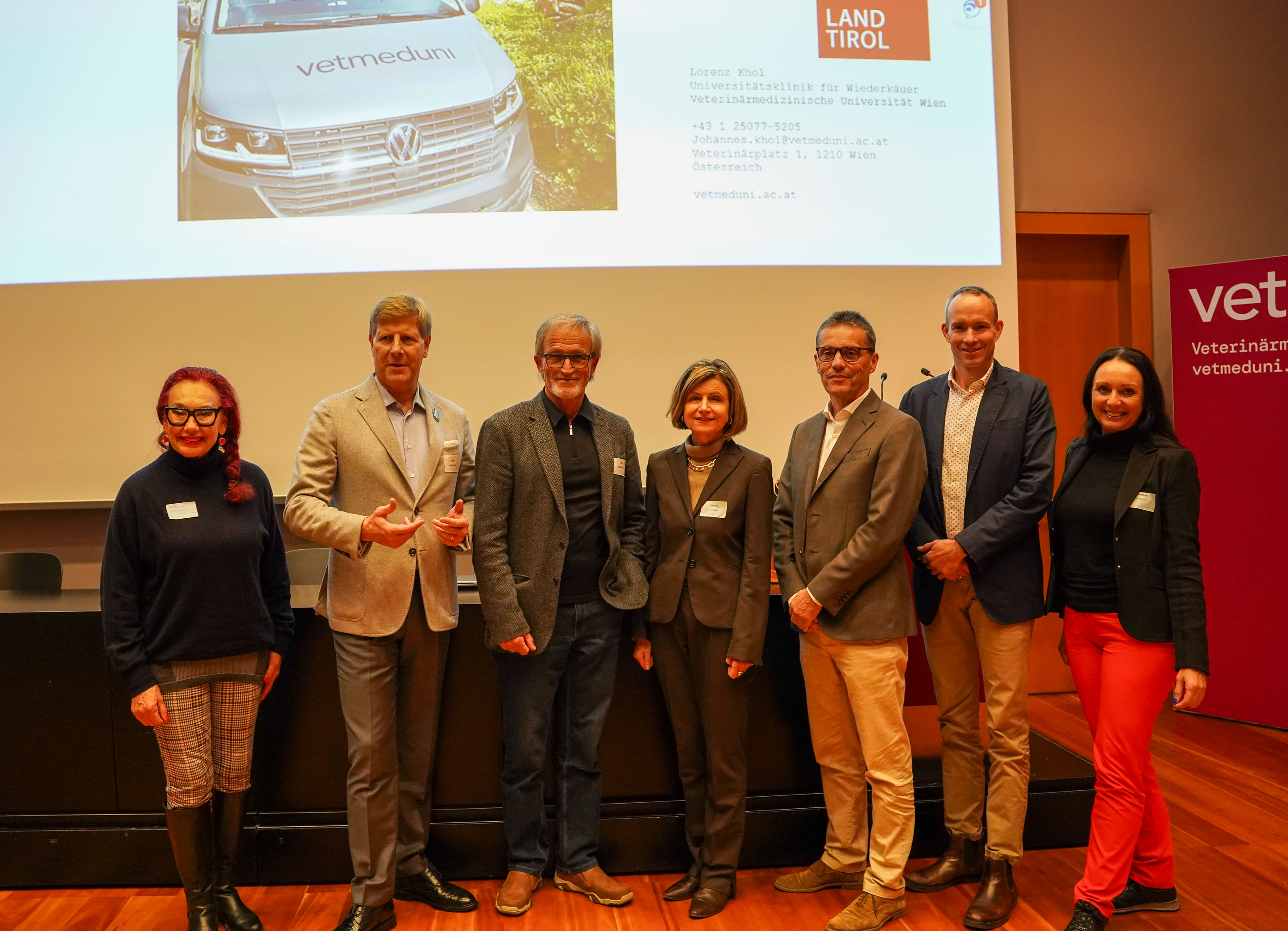 Um diese das Berufsbild schädigenden Belastungen zu beseitigen wäre es auch wichtig, Land-Tierärzte besser miteinander zu vernetzen. Was bereits in Tirol über die dortige Vetmed-Außenstelle „Wiederkäuer im Alpenraum“ initiiert wurde. „Wir haben vier kooperierende Tierarztpraxen, an denen Studierende ihre praktische Ausbildung absolvieren können“, ließ Außenstellen-Leiter Lorenz Khol sein Tirol-Publikum wissen. So lasse sich das Interesse für den Tierarztberuf im Alpenraum wie generell der Beruf „Nutztiermediziner“ steigern und damit der schon bestehende Nachfolgermangel beheben. Nebenbei, so Khol, betreiben „wir mit den Kooperationen auch viel angewandte Forschung.“
