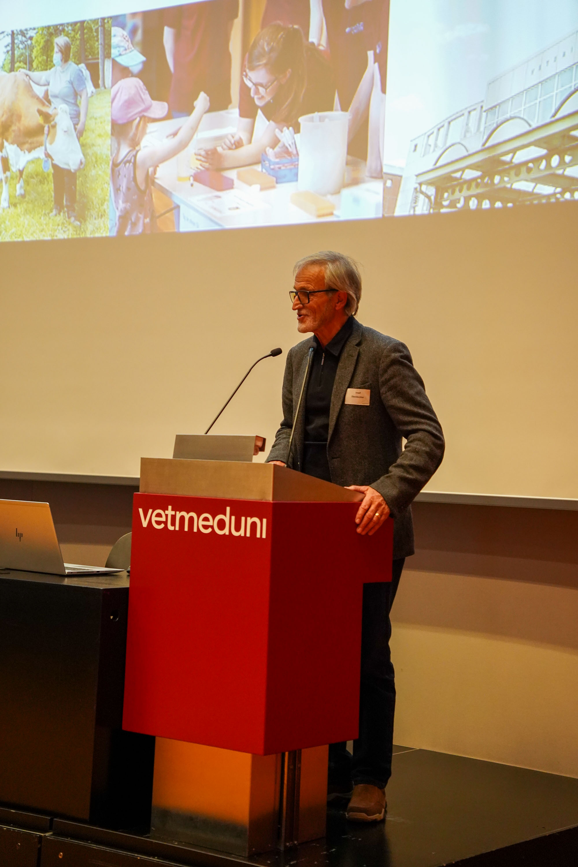 Unterstützung für den Wissenschaftsbereich der Vetmeduni, für Tierschutzprojekte und für Abschlussarbeiten der Studierenden bietet die Forster-Steinberg-Stiftung, wie deren Vorstandsvorsitzender Josef Ebenbichler den Tirol-Besuchern schilderte. Club Tirol-Gründungsmitglied Ebenbichler – auch bekannt als einstiger „Aufbauer“ von Schloss Hof sowie Betreiber des Schönbrunnerbades in Wien – war in seiner Funktion als Vizerektor für Ressourcen (2009 - 2014) maßgeblich für den „Strukturwandel“ an der Vetmeduni verantwortlich. „Meine wirtschaftliche Expertise war mit ein Grund, warum mich die Stiftung im Vorstand, zuständig für die wirtschaftlichen Agenden, haben wollte“, so Ebenbichler. Zentrale Strategie der vom kinderlosen Ehepaar Eva und Franz Forster-Steinberg (beide mittlerweile verstorben) eingerichteten Stiftung ist es, gesundheitsrelevante Aspekte der Human-, Tier- und Umweltmedizin zu vereinen. Alle zwei Jahre werden Mittel in Form des „Forster Steinberg Preises“ für wissenschaftliche Projekte, Tierschutzprojekte und Abschlussarbeiten der Studierenden ausgeschüttet.