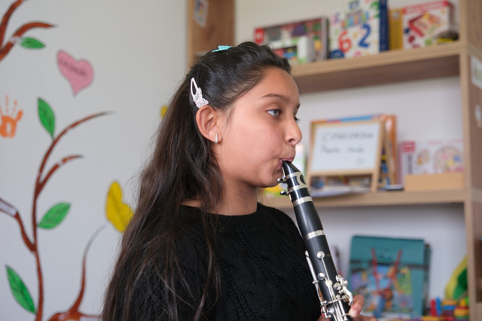 Sie entdeckt ihre Leidenschaft für Musik und lernt im Tageszentrum Klarinette spielen.