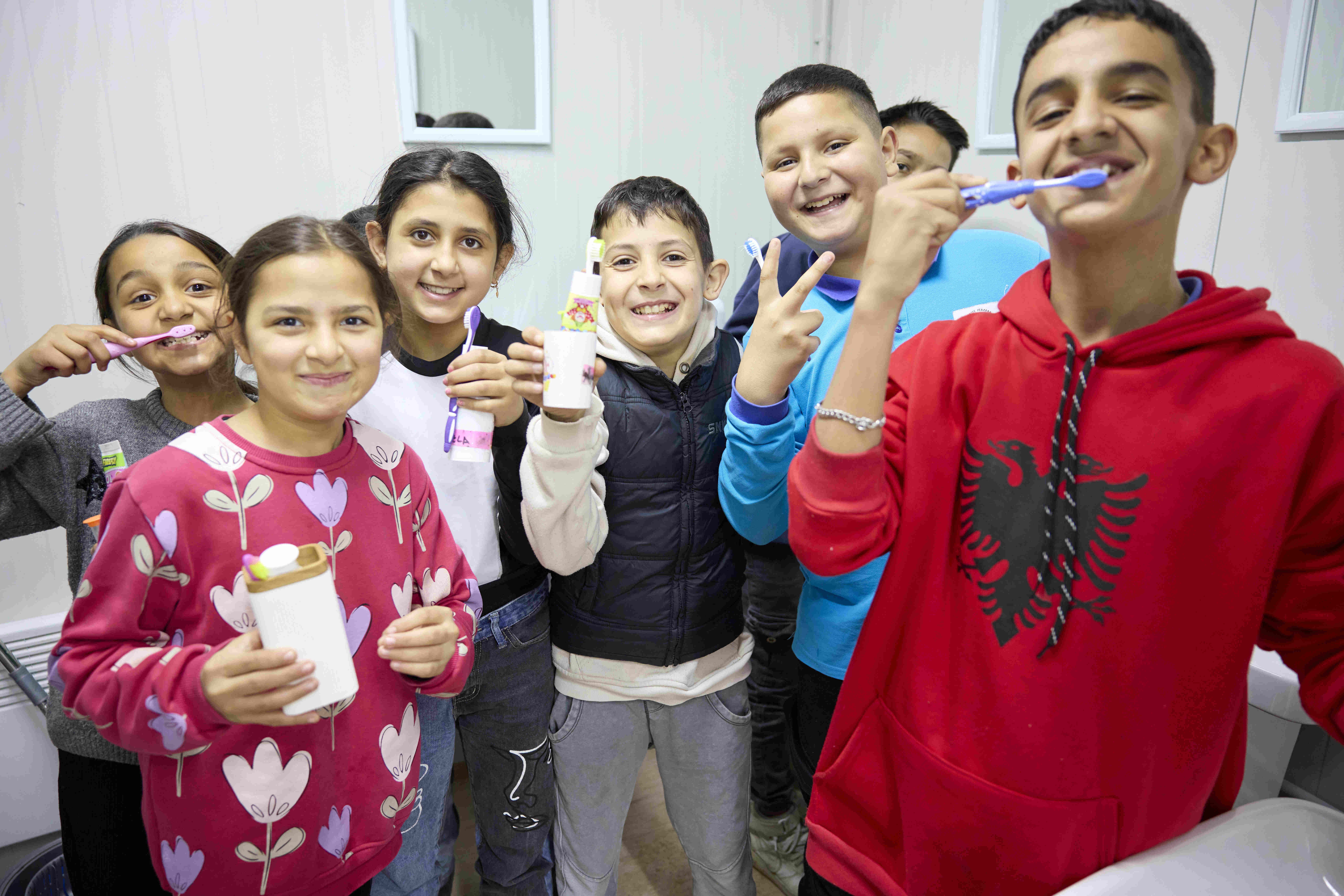 Dina, 12 Jahre alt, besuchte als Kind die Schule nur unregelmäßig, dementsprechend waren ihre schulischen Erfolge. Der Weg zur Schule war weit und ihre Eltern konnten ihr kaum das Notwendigste für die Schule finanzieren. Mit der Eröffnung des CONCORDIA Ali Ibra Centers im Kosovo 2024 änderte sich Dina’s Leben zum Positiven: