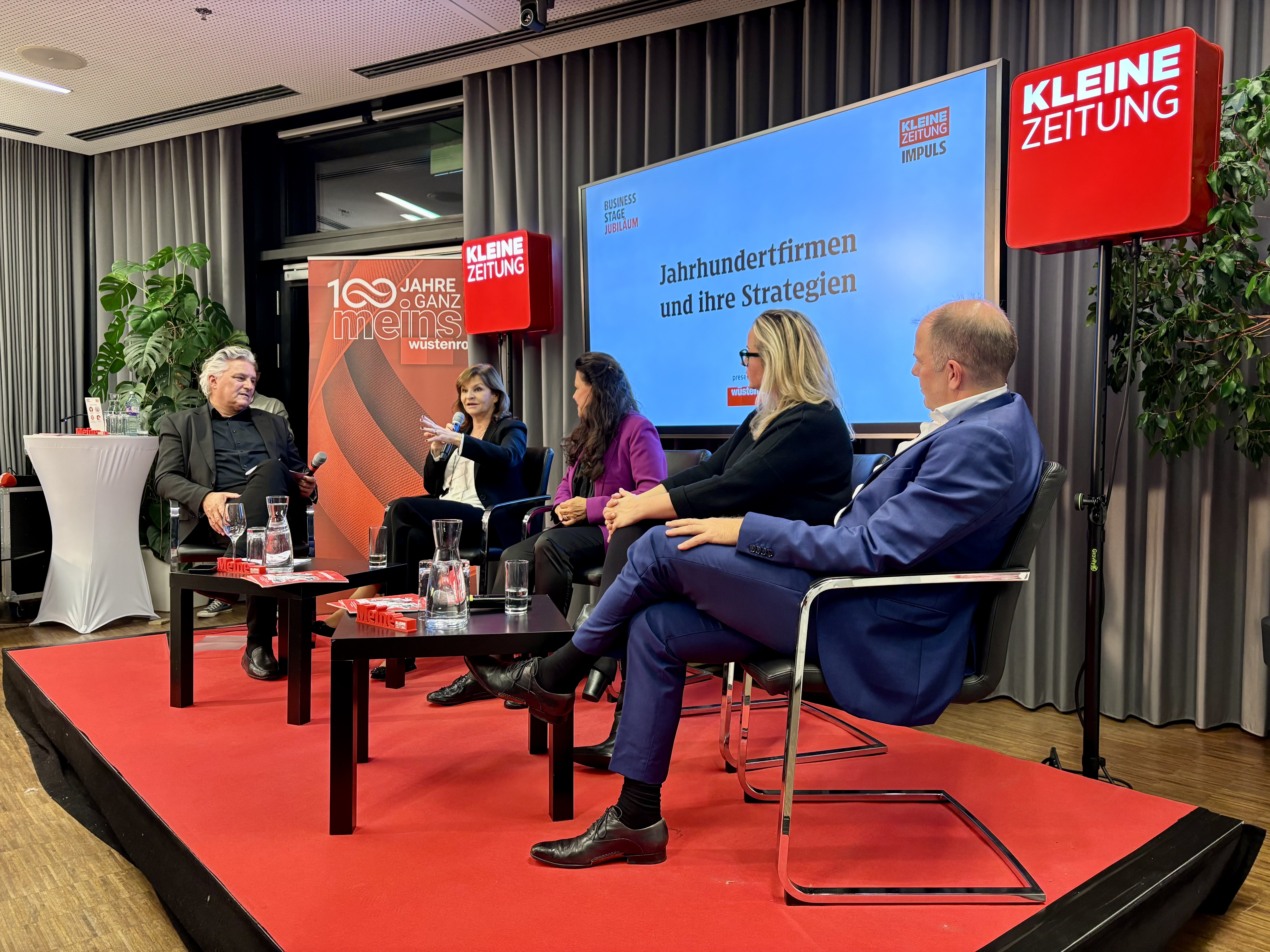 Am 15. Oktober 2025 fand in Graz die zweite „Jubiläums“-Business Stage der Kleinen Zeitung, presented by Wüstenrot, statt. Unter der Moderation und Leitung von Hubert Patterer, dem Herausgeber der Kleinen Zeitung, diskutierten Wüstenrot Generaldirektorin Dr. Susanne Riess-Hahn; Prof. Anita Frauwallner, CEO und Gründerin des Instituts AllergoSan; Mag. Marlies Schaden-Spätauf, Eigentümerin und Geschäftsführerin von Spätauf Möbel sowie Mag. Bernhard Rinner, Geschäftsführer der Bühnen Graz GmbH. Im Mittelpunkt stand die Frage, was es braucht, um am Markt langfristig bestehen zu können.