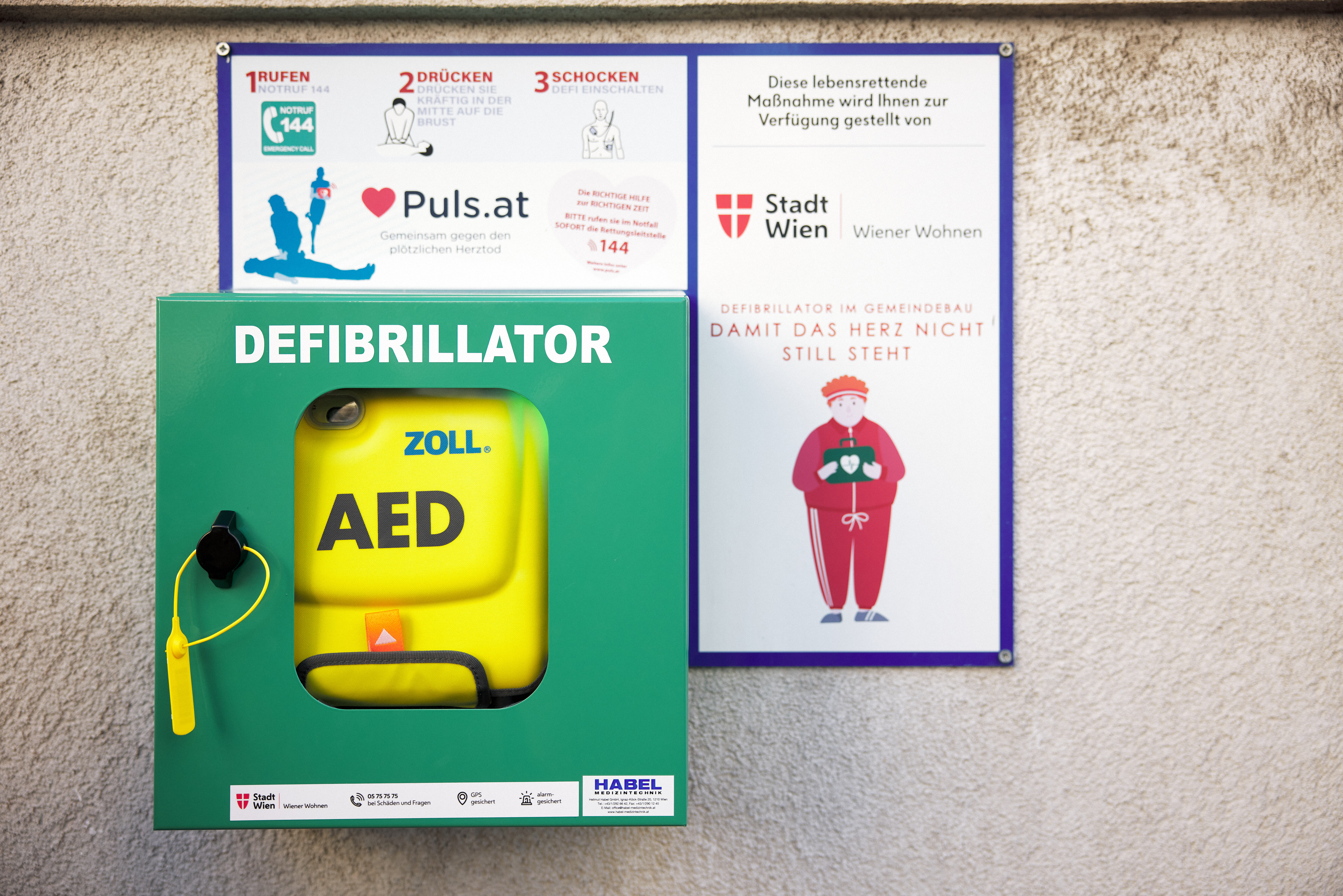 In 26 Wohnhausanlagen von Wiener Wohnen stehen bereits 41 öffentlich zugängliche Defibrillatoren rund um die Uhr zur Verfügung. Sie können im Notfall Leben retten, indem sie die Zeit bis zur Ersthilfe entscheidend verkürzen. Die Geräte erreichen direkt 80.000 Bewohner*innen und stehen auch allen Menschen in Wien offen, die sich in der Umgebung befinden. Die Defis sind in allen Stiegenhäusern deutlich gekennzeichnet. Anschaffung und laufender Betrieb werden von Wiener Wohnen übernommen, für die Mieter*innen entstehen keine zusätzlichen Kosten.