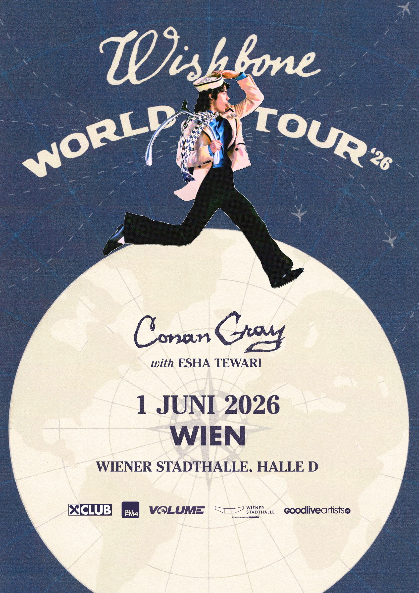 Der US-amerikanische Singer-Songwriter Conan Gray kommt 2026 endlich wieder nach Österreich! Am 1. Juni 2026 macht seine gefeierte „WISHBONE WORLD TOUR“ Halt in der Wiener Stadthalle, Halle D.