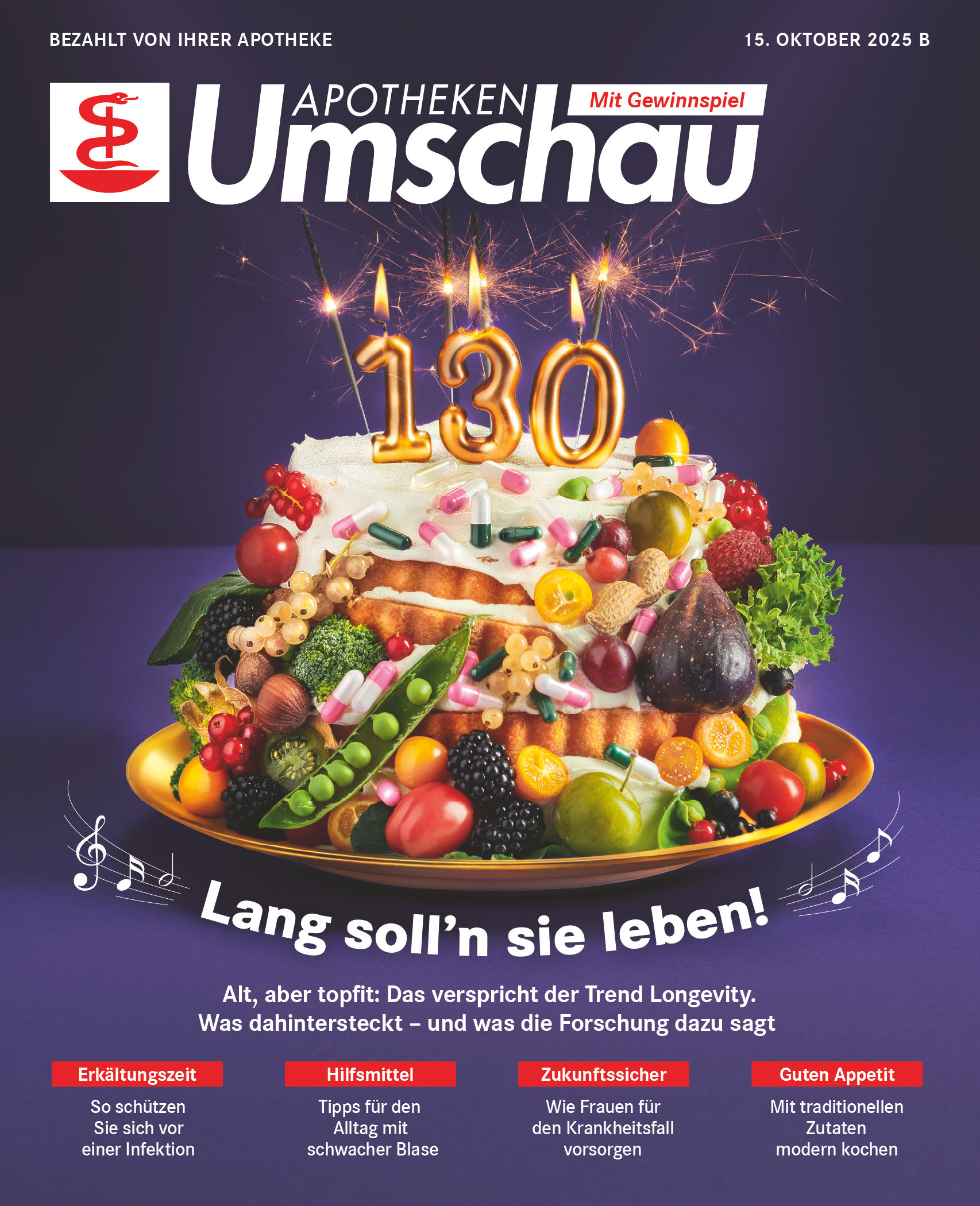 Diese Meldung ist nur mit Quellenangabe zur Veröffentlichung frei. Das Gesundheitsmagazin "Apotheken Umschau" 10B/2025 ist aktuell in den meisten Apotheken auch in Österreich erhältlich. Viele weitere interessante Gesundheits-News gibt es unter https://www.apotheken-umschau.de sowie auf Facebook, Instagram und YouTube.