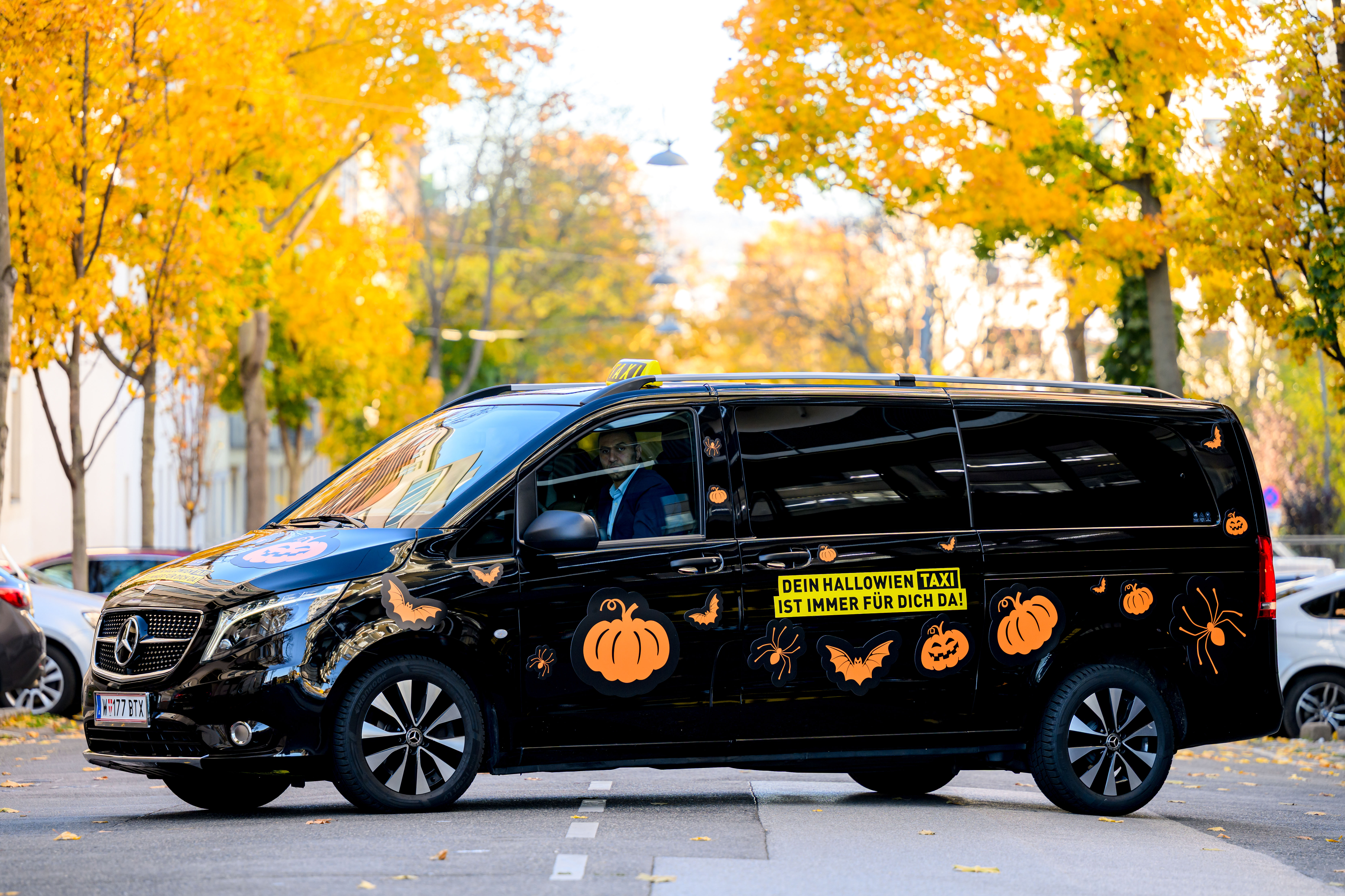 Wien, 30.10.25 - Am 31. Oktober wird es in Wien nicht nur schaurig-schön, sondern auch besonders serviceorientiert für alle Halloween-Begeisterten: Die Wiener Taxi-Innung schickt ein festlich dekoriertes „HalloWien Taxi“ auf Tour – von 18:00 bis 24:00 Uhr ist das auffällig gestaltete Fahrzeug in der Stadt unterwegs und sorgt für eine ganz besondere Überraschung.