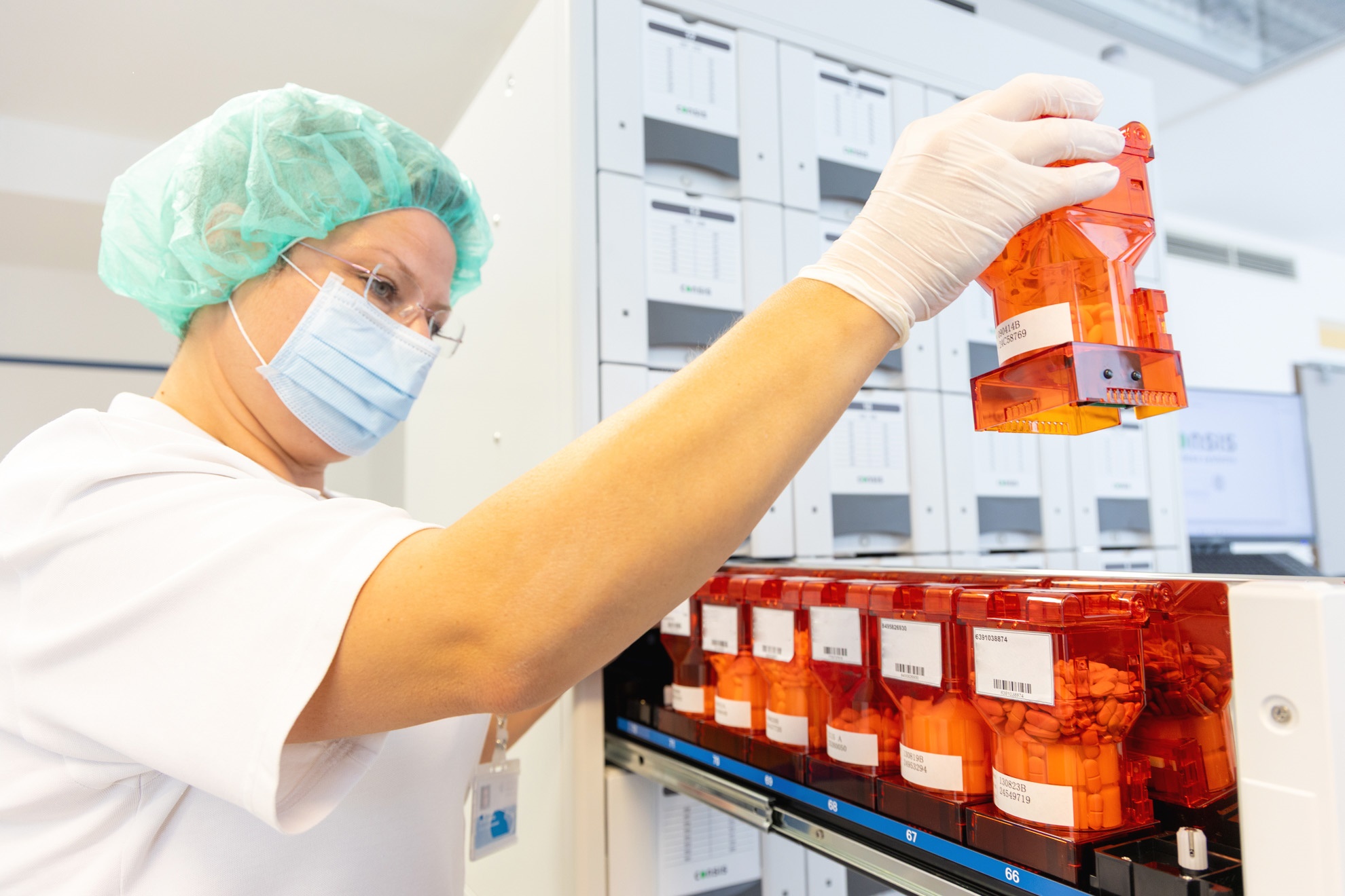 Die jeweils nötigen Medikamente – Tabletten und Kapseln – für Patient*innen werden nicht mehr wie bisher vom Pflegepersonal auf den Stationen händisch aus den Packungen gedrückt und den Patient*innen zugeordnet, sondern von der Apotheke mithilfe eines Automaten „verblistert“ – also in einzelnen kleinen Hüllen verpackt. Damit wird das Pflegepersonal entlastet und noch mehr Zeit für die direkte Zuwendung zu den Patient*innen gewonnen.
