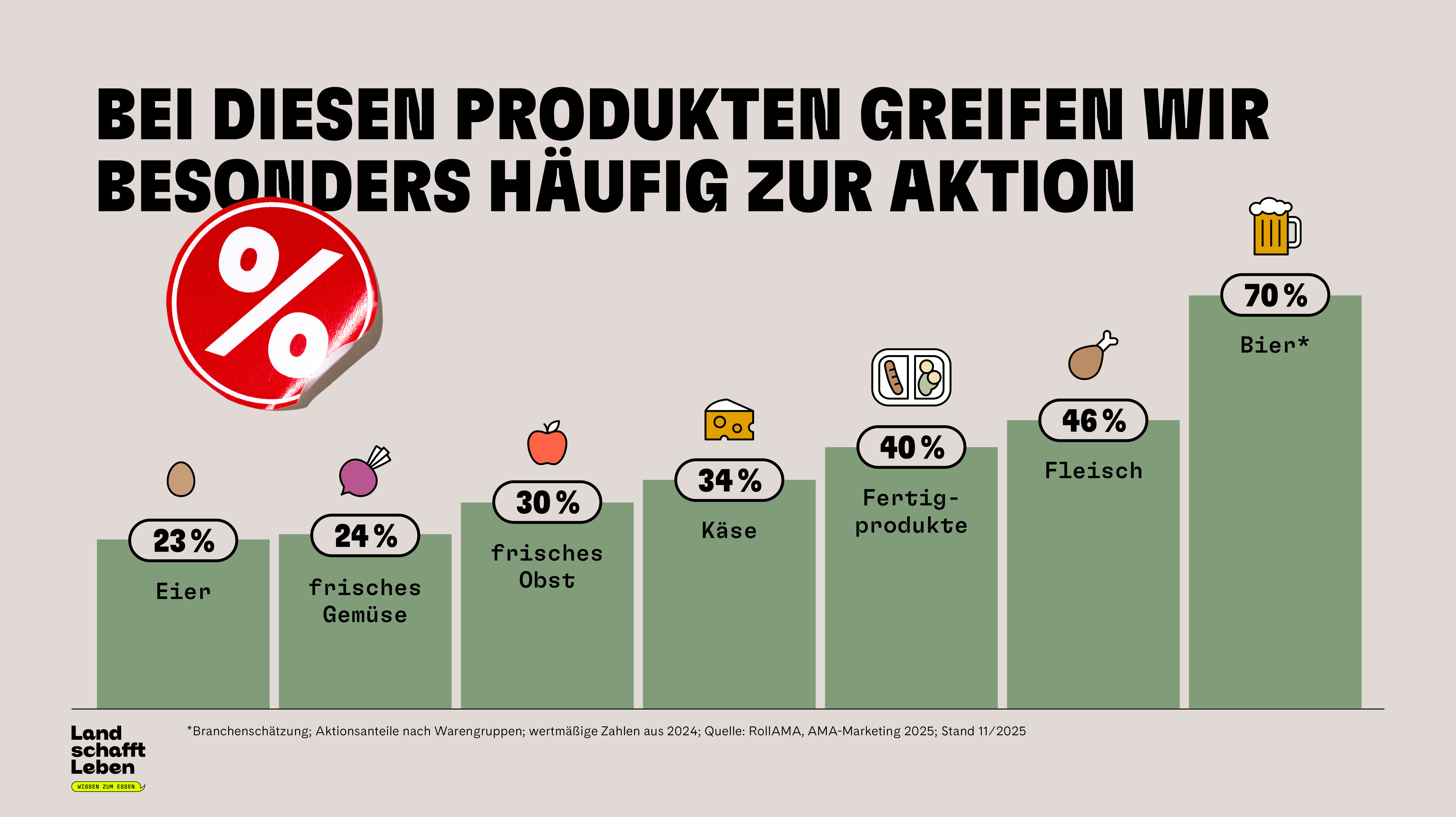 Jeder dritte Euro, der in Österreich für Lebensmittel ausgegeben wird, fließt in Aktionsware. Zum Black Friday klärt der Verein Land schafft Leben über die Kehrseiten von preisbasierten Kaufentscheidungen auf.
