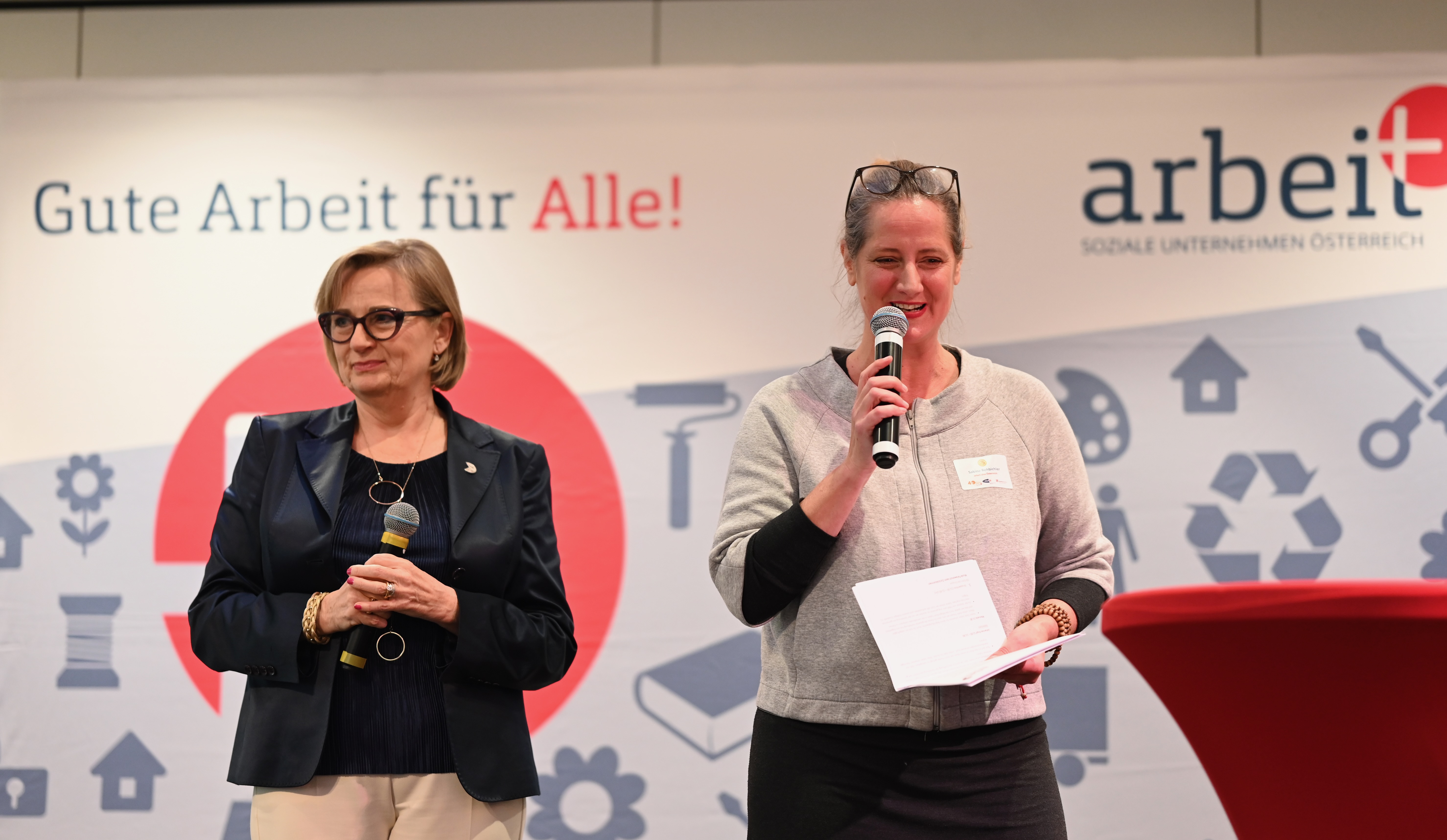 In ihrer Eröffnungsrede betonte Bundesministein Korinna Schumann: „Ich freue mich, dass heute 15 gemeinnützige Soziale Unternehmen für ihre hohen Qualitätsstandards ausgezeichnet wurden. Soziale Unternehmen sind das Sicherheitsnetz in unsicheren Zeiten für Menschen, die vor Herausforderungen am Arbeitsmarkt stehen und die sie alleine nicht lösen können. Mit der Aktion 55 Plus schaffen wir ab 1. Jänner 2026 neue, existenzsichernde Beschäftigung für langzeitarbeitslose Menschen ab 55 Jahren – gemeinsam mit starken und erfahrenen Partnern.“