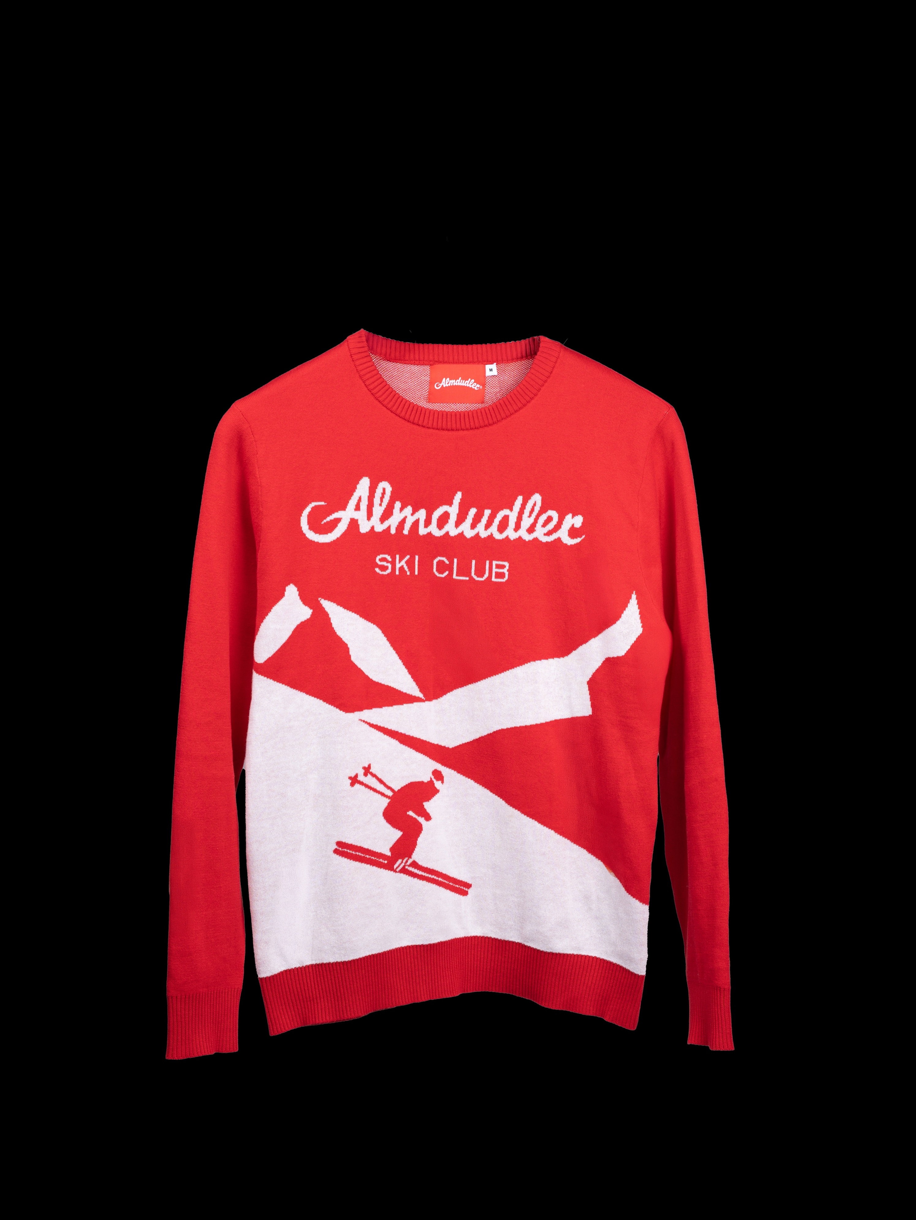 Bergpanorama, Skifahrer und ein kräftiges Almdudler-Rot: Der Ski Club Pullover bringt das Winterfeeling auf den Punkt. Das Retro-Design mit weißer Strickgrafik und großem Frontlogo ist ein echter Blickfang – ob auf der Hütte beim Apres Ski, am Lift oder beim Stadtspaziergang. Mit dem Accessoire macht man immer und überall einen sportlichen Eindruck. Weicher Strick, Rippbündchen und unisex Schnitt sorgen für Komfort mit Charakter. Ein Pullover für alle, die Almdudler nicht nur trinken, sondern tragen wollen. Erhältlich um Ꞓ 49,90 unter shop.almdudler.com.