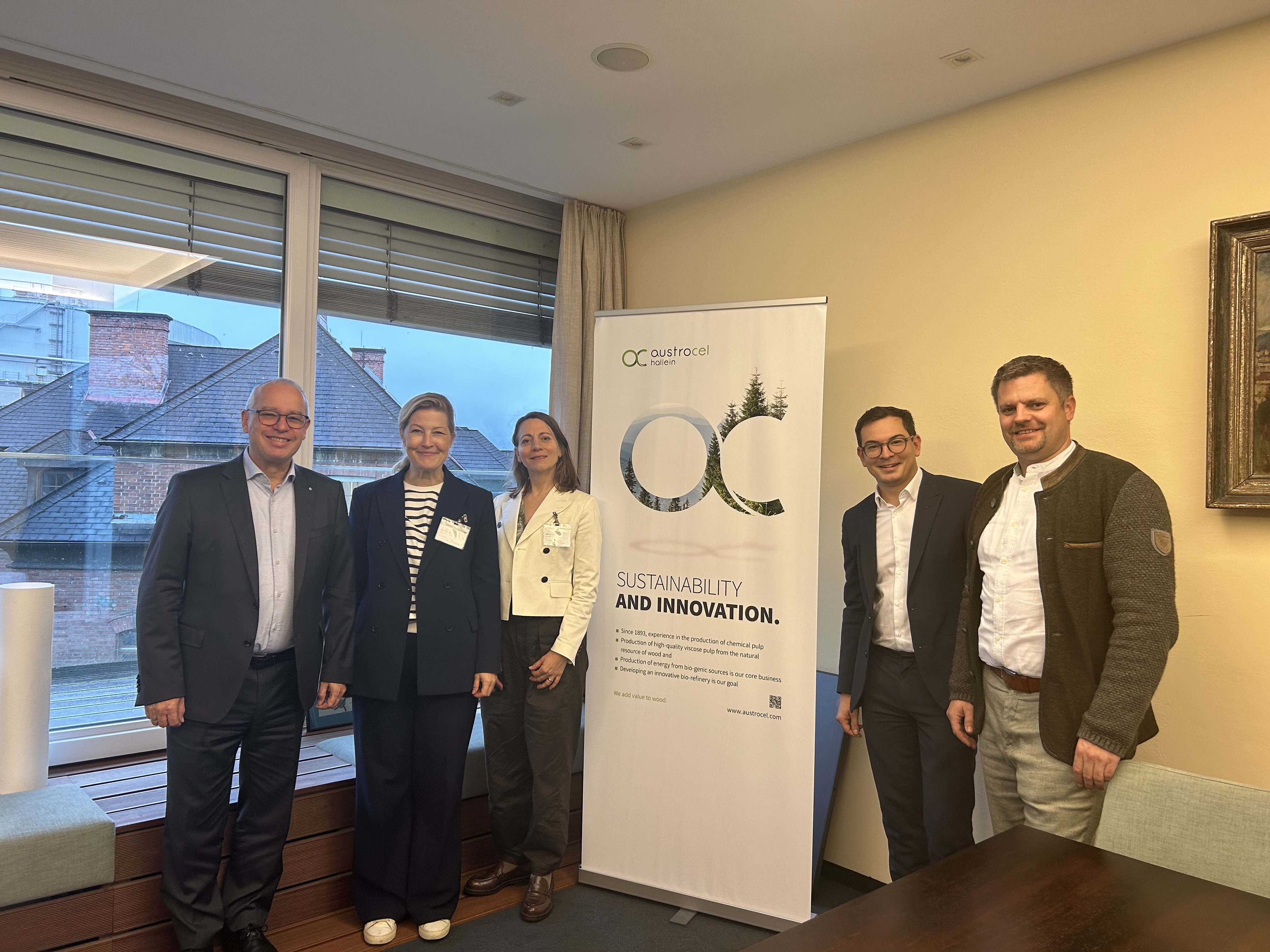 AustroCel Hallein gilt somit in der europäischen Industrie zunehmend als Vorzeigebeispiel für erfolgreiche biobasierte Transformation. Das Unternehmen engagiert sich auf Einladung von Direktorin Sofie Carsten Nielsen bei der European Biosolutions Coalition (EBC), einer EU-weiten Initiative, die sich für den Ausbau naturbasierter, nachhaltiger Lösungen einsetzt – als Weg zu einer klimaneutralen und wettbewerbsfähigen europäischen Wirtschaft.