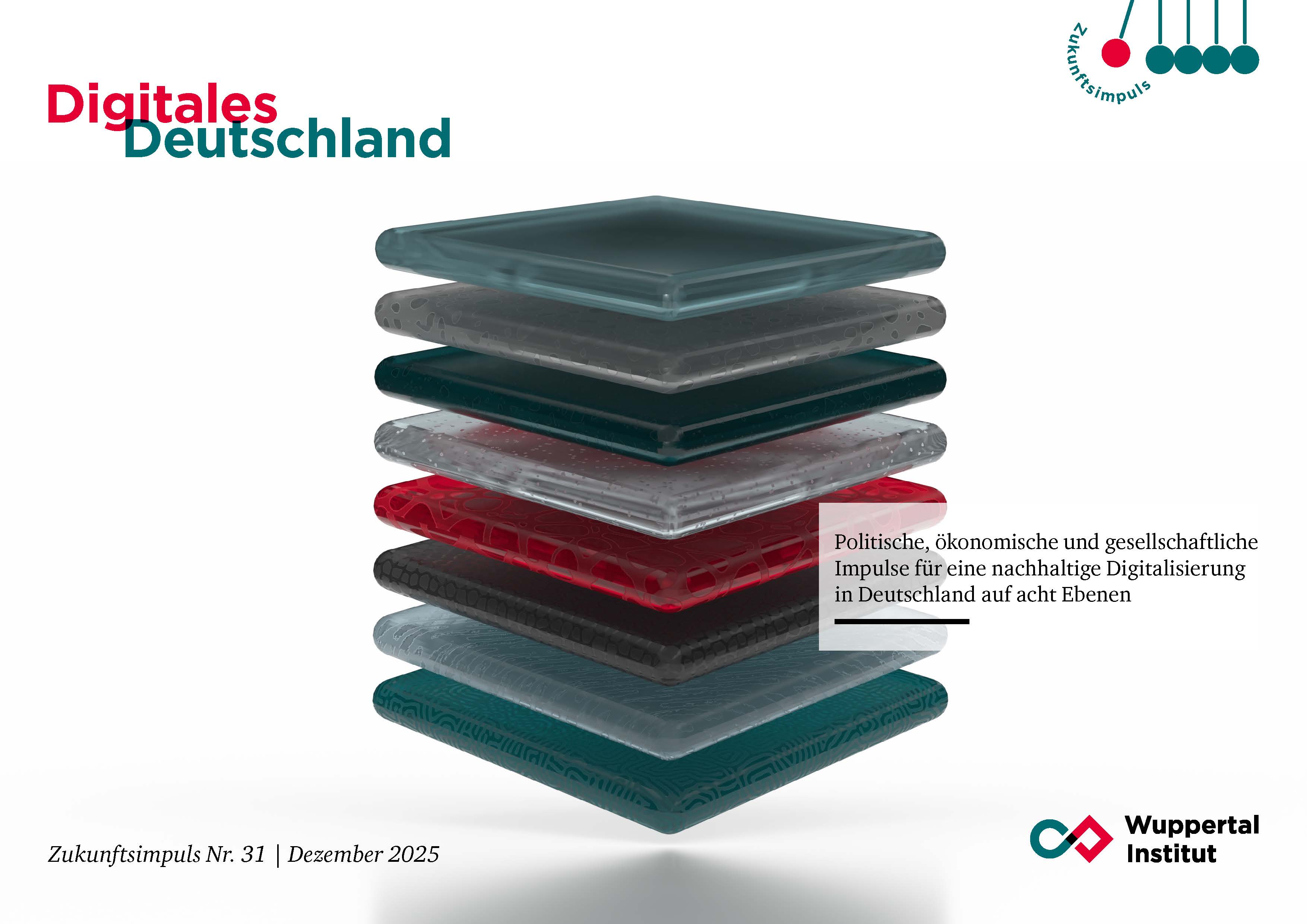 Deutschland schnell und nachhaltig digitalisieren - und dabei sowohl wirtschaftliche und soziale Potenziale heben als auch den Klimaschutz voranbringen: Was dazu nötig ist, zeigen Forschende des Wuppertal Instituts im Zukunftsimpuls "Digitales Deutschland". Die 15 Autor*innen liefern konkrete Handlungsempfehlungen, zeigen Best Practices und erläutern wissenschaftliche Hintergründe für acht zentrale Handlungsfelder: von globalen Produktinformationssystemen über aktuelle Entwicklungen in den Bereichen KI, Ökodesign und Mensch-Maschine-Schnittstellen bis hin zur Rolle des Gesetzgebers für eine nachhaltige Digitalisierung. Zudem beschreiben sie konkrete Maßnahmen zur Digitalisierung des Verkehrs und unserer Städte und zeigen, wie sich der damit verbundene Energie- und Ressourcenverbrauch begrenzen lässt.
