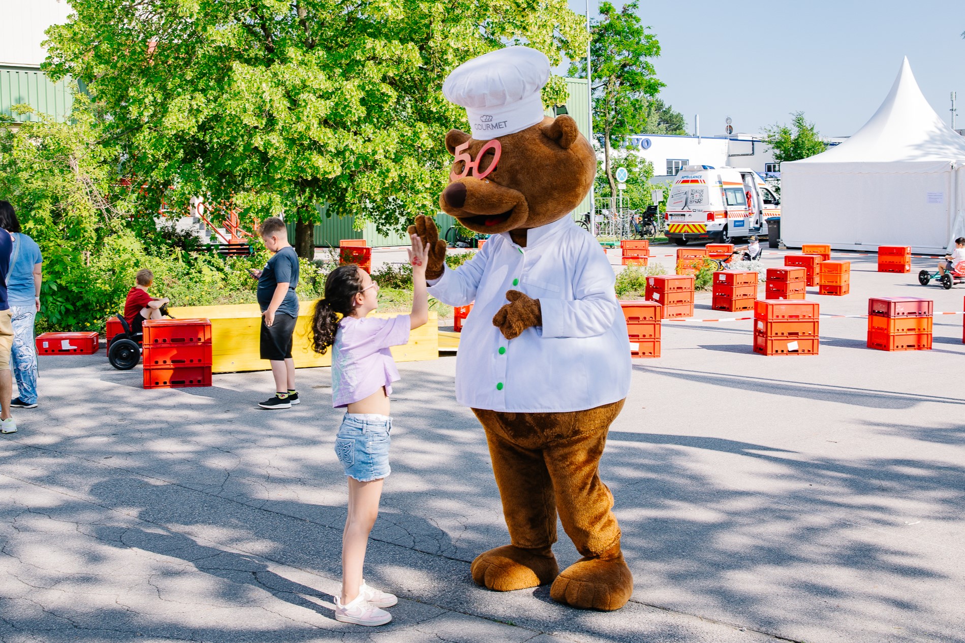Gemeinsam mit seinen Mitarbeiter:innen und ihren Familien feierte GOURMET das Jubiläum mit zwei Familientagen an den Frischküchenstandorten Wien und St. Pölten unter dem Motto „Mittendrin, wo Mama und Papa arbeiten“. Spannende Führungen ermöglichten exklusive Einblicke in die Frischküchen und die Logistik. Als zertifiziert familienfreundliches Unternehmen sorgte GOURMET auch für ein buntes Programm für Kinder.
