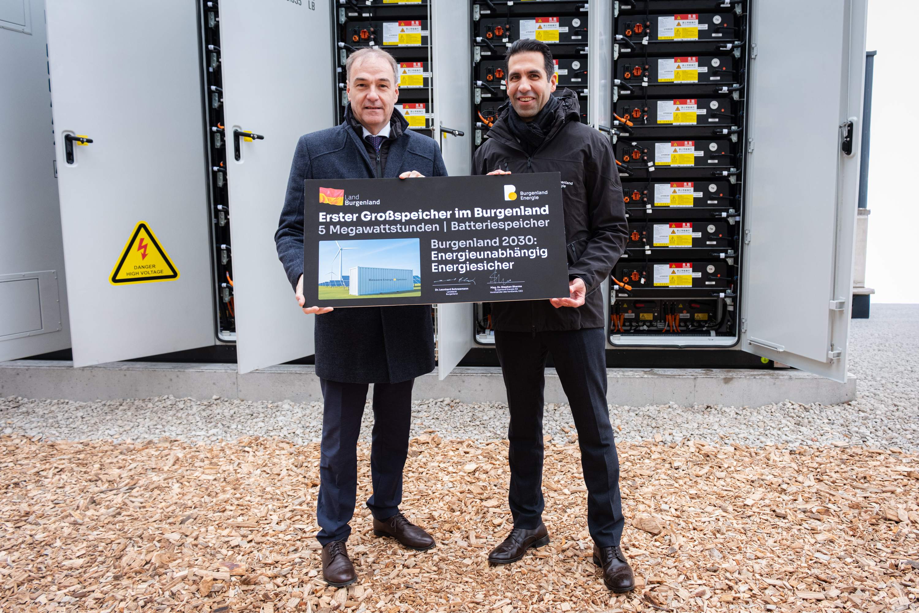 „Heute ist ein historischer Tag für die Energieversorgung des Burgenlands. Der erste große Stromspeicher ist im Burgenland angekommen. Damit befindet sich nach Wind und Photovoltaik die dritte Säule unserer Energieunabhängigkeit, die Stromspeicher, voll im Ausbau", so Landesrat Leonhard Schneemann und CEO der Burgenland Energie Stephan Sharma am Montag in Siegendorf.