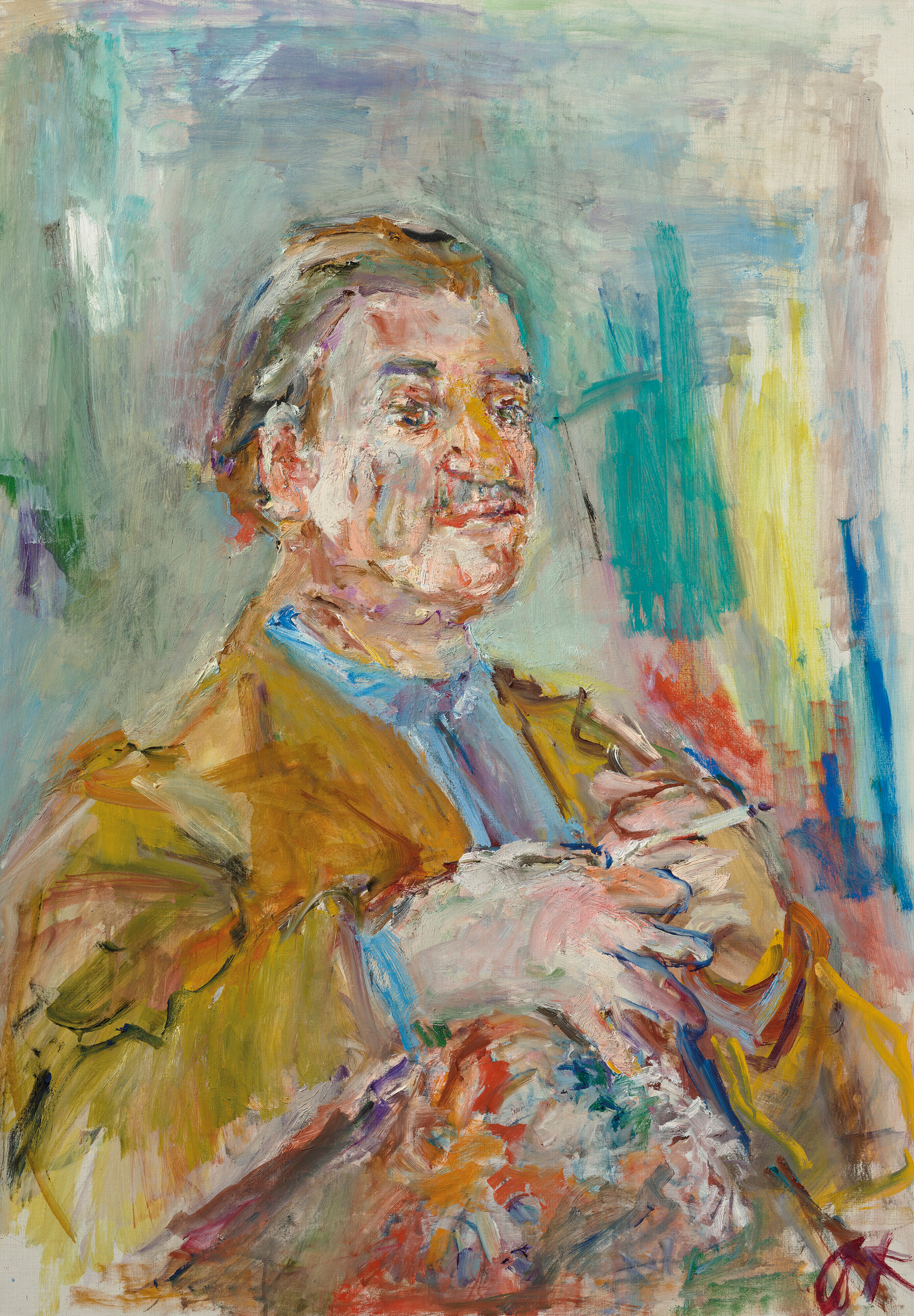 Aus den großzügigen Erlösen des Fundraisingdinners im Vorjahr konnte ein Spätwerk Oskar Kokoschkas aus dem Jahr 1959 erworben werden. Es zeigt den albanischen Maler und Diplomaten Chatin Sarachi (1899–1974), mit dem Kokoschka eine enge Freundschaft verband. In ihrem gemeinsamen Atelier im Londoner Stadtteil Kensington porträtierten sie sich gegenseitig und hinterließen ein umfangreiches Konvolut wechselseitiger Zeichnungen und Gemälde. Kokoschkas Portrait von Sarachi – mit der Widmung „for my Chatinus february 1959 OKokoschka“ auf der Rückseite – ist Zeugnis ihrer Freundschaft. Charakteristisch ist der sich in leuchtende, bunte Farbflächen auflösende Hintergrund und der lockere Pinselduktus.