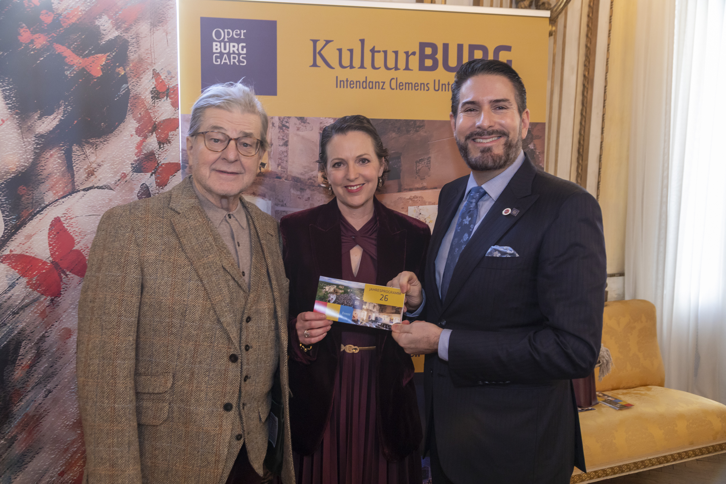 Auch die KulturBURG bietet kommende Saison wieder ein vielfältiges und hochkarätiges Zusatzprogramm neben der Oper und spannt den Bogen von Vernissagen über Matinéen, musikalische Lesungen und fesselnden Gesprächen bis hin zu Liederabenden, Konzerten und spektakulären Open-Air-Events. Zum Saisonstart am 26. April lädt der Intendant gemeinsam mit dem Kunstsammler Werner Trenker zur exklusiven Vernissage von großformatigen und kraftvollen Kunstwerken des renommierten Künstlers Hannes Mlenek ein. Zwischen April und September finden sich dann zahlreiche Persönlichkeiten aus Kunst und Kultur auf der Burg Gars ein – darunter Publikumslieblinge wie Schauspieler Erwin Steinhauer, Stargeigerin Lidia Baich, Opernsänger- und Sängerinnen wie Andreas Schager, Daniela Fally, Peter Edelmann oder Alois Mühlbacher, die Historikerin und Kaiserhausexpertin Katrin Unterreiner, Starpianist Stefan Vladar, Philharmoniker Wolfgang Vladar und Weltklassegeigerin Bojidara Kouzmanova-Vladar, sowie Nachwuchssopranistin Martha Matscheko. Clemens Unterreiner selbst wird gleich an mehreren Abenden als Sänger begeistern.