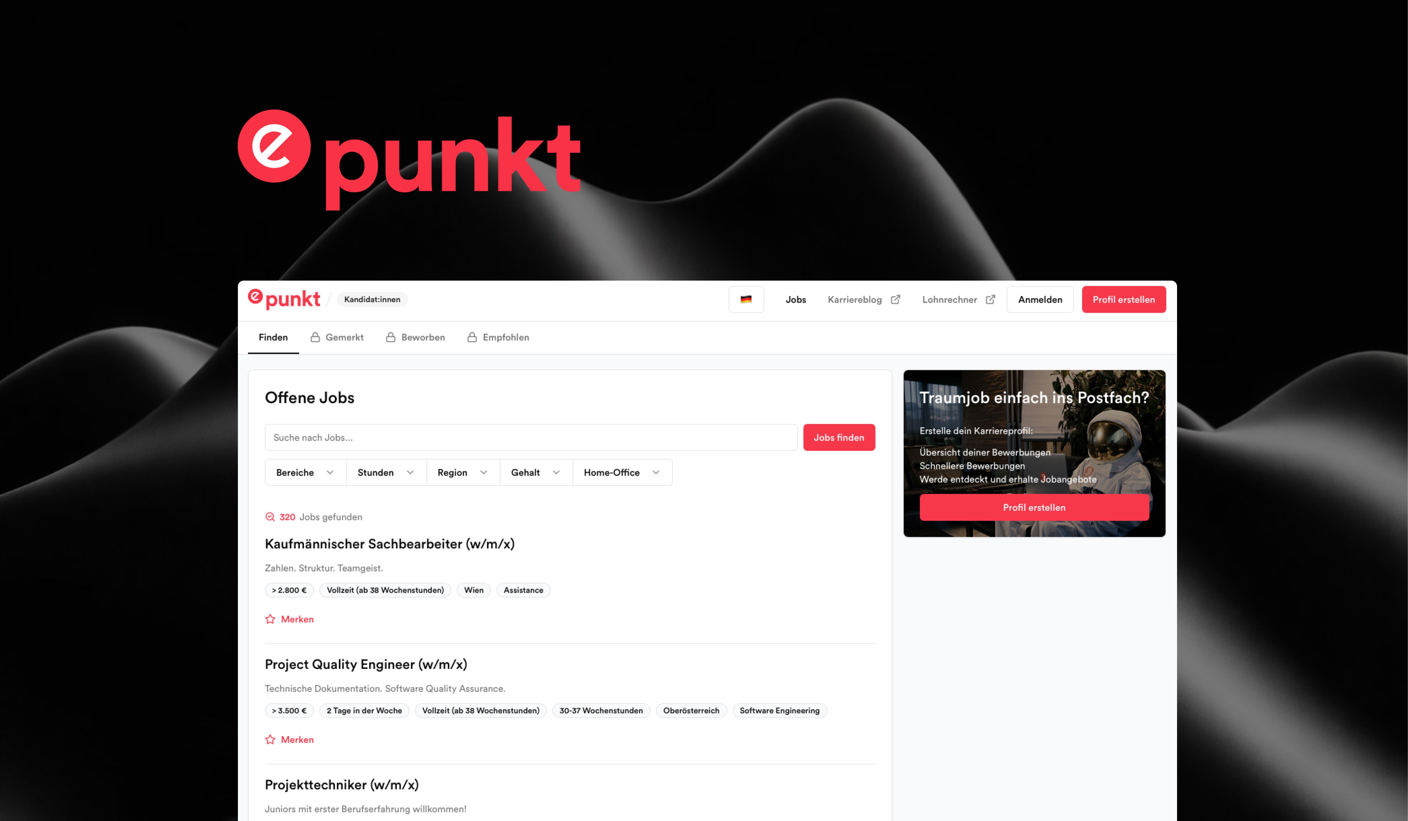 Die Software Agentur Dotbite hat für epunkt, eines der führenden Recruiting- und HR-Beratungsunternehmen Österreichs, ein neues Job- und Kundenportal realisiert. Die Plattform spielt eine zentrale Rolle in den digitalen Recruiting-Prozessen und unterstützt sowohl Bewerber:innen als auch Unternehmenskunden in einer gemeinsamen, skalierbaren Lösung.